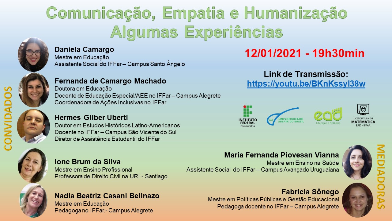 12/01 - Mesa de debates - “Comunicação, empatia e humanização”. Link da transmissão.