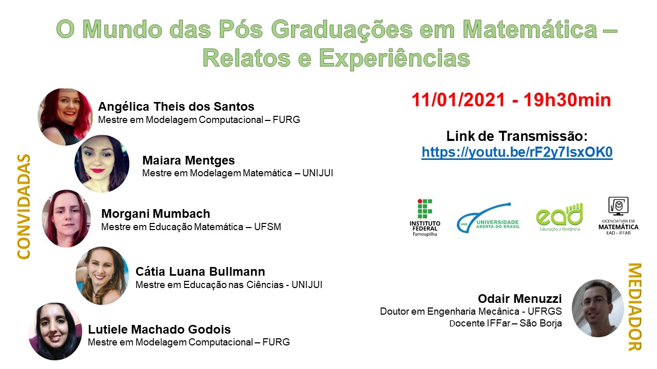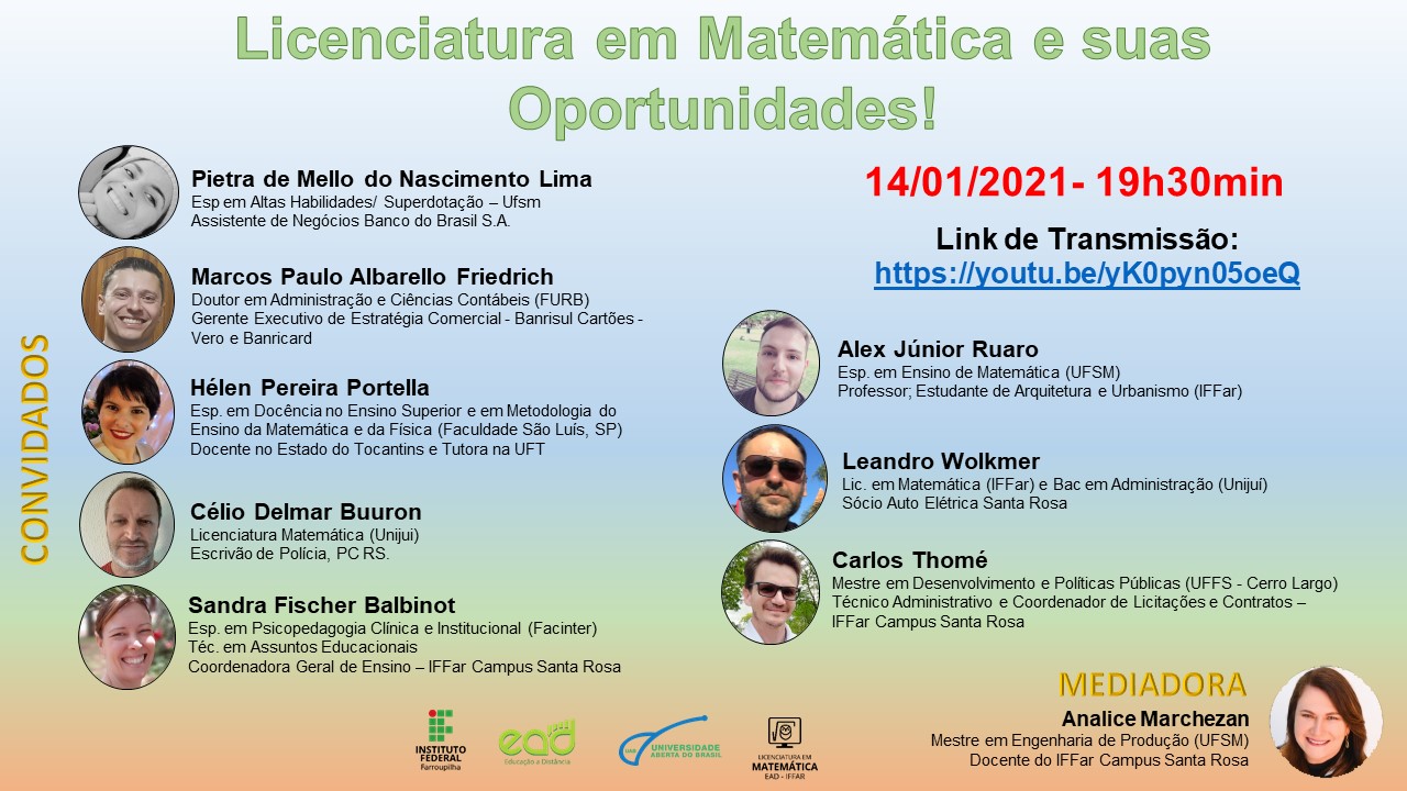 14/01 - Mesa de debates - “Licenciatura em matemática e suas oportunidades”. Link da transmissão