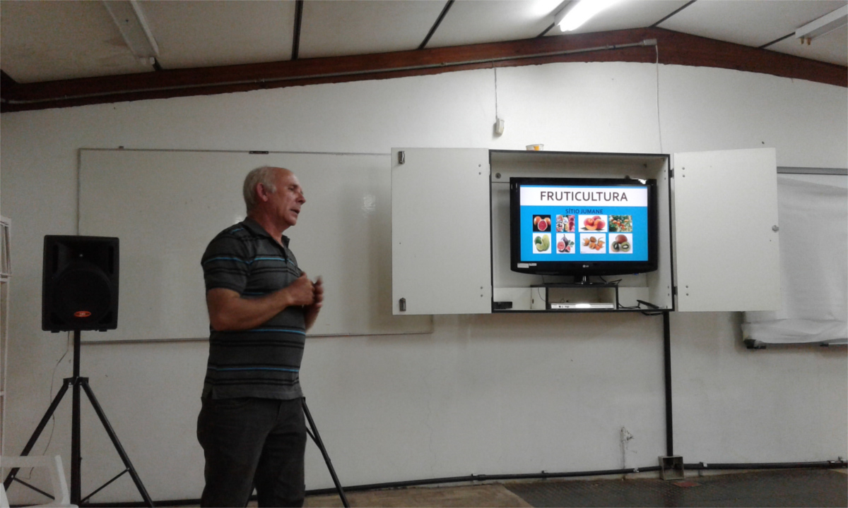 Na noite do dia 27 de novembro de 2017, os alunos do Curso Técnico em Agroindústria do Polo Augusto Ruschi, da cidade de Santa Maria, tiveram a palestra intitulada: “A fruticultura na Região Central do RS e a Gestão Agroindustrial para principiantes”, essa proferida pelo o Técnico em Fruticultura, formado pelo Colégio Politécnico da UFSM, Sr. Geraldo André Raddatz.