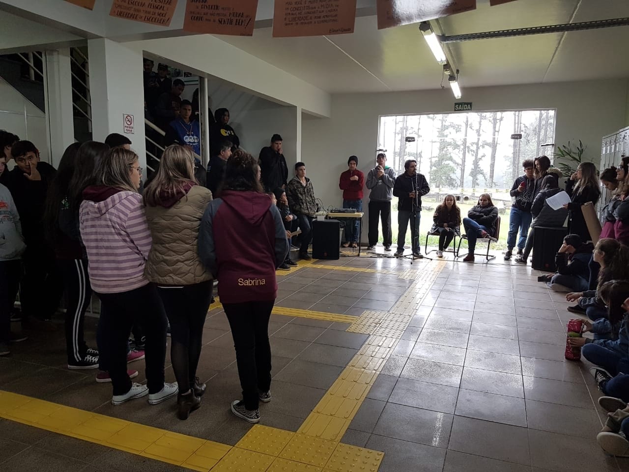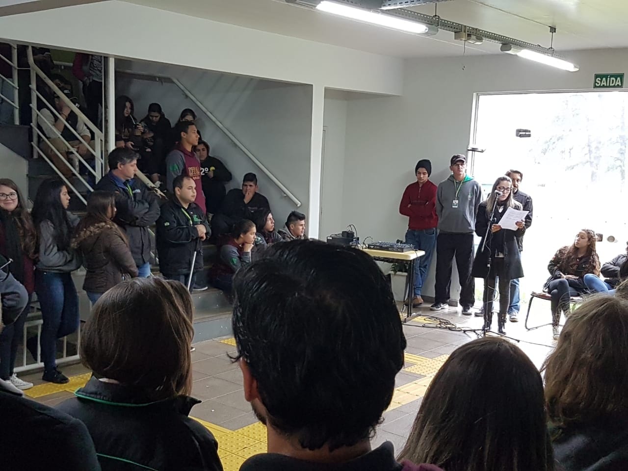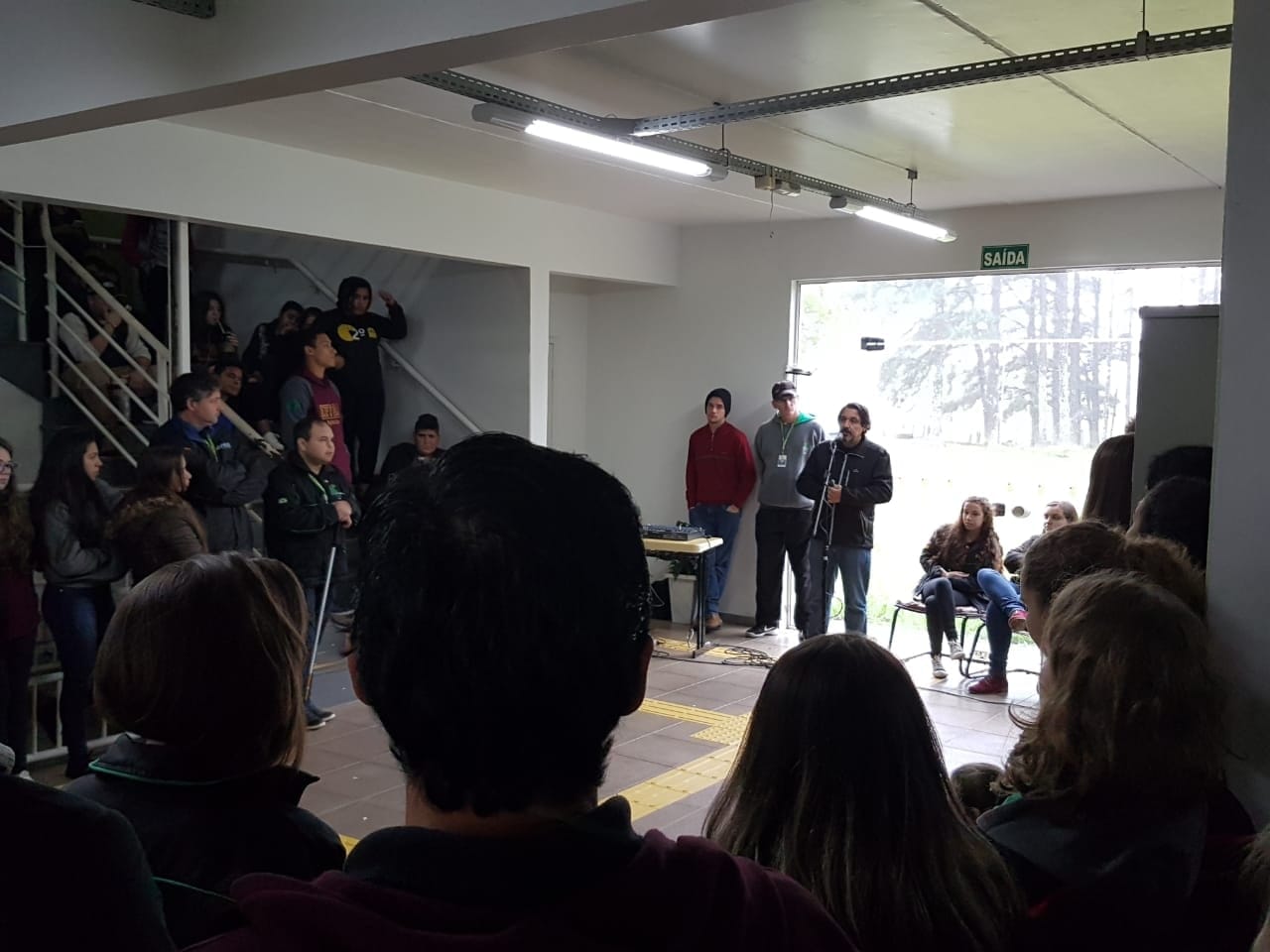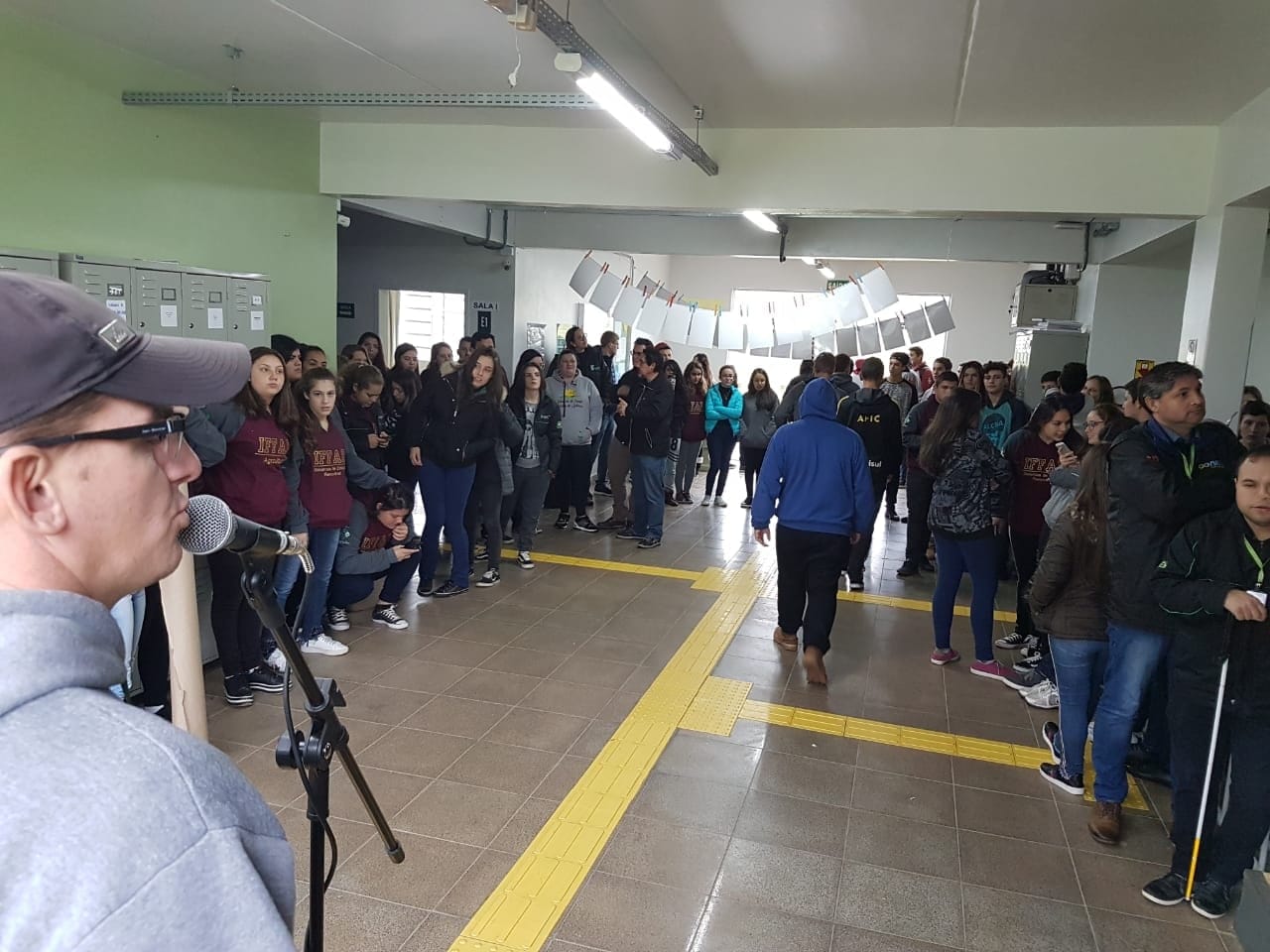 Na tarde desta segunda-feira, alunos e servidores do IFFar - Campus Jaguari promoveram um abraço simbólico à instituição. O Diretor Geral, Carlos Roberto Devincenzi Socal, contextualizou o ato, asseverando que é preciso garantir a educação pública gratuita e de qualidade no Brasil. Foi lida a Nota Oficial do Conif. Essa atividade integra um movimento nacional sincronizado em todas as unidades dos Institutos Federais do país.