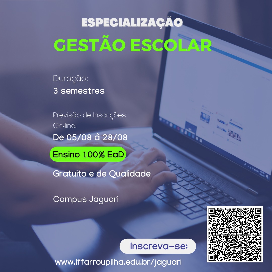 O IFFar Campus Jaguari está com as inscrições abertas para os cursos de pós graduação lato sensu. São cursos 100% com aulas EaD via plataforma Moodle.