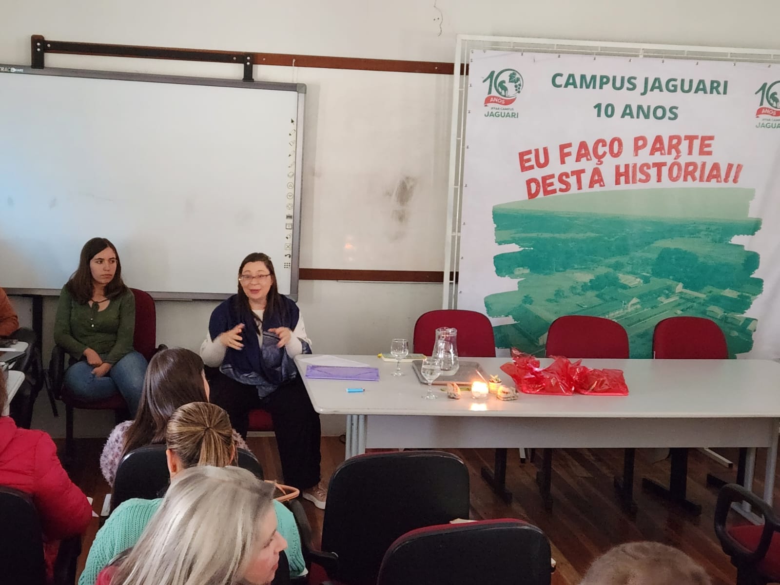 No dia 6 de setembro de 2023, ocorreu, durante reunião geral para os servidores do IFFar Campus Jaguari, a roda de conversa com a temática Setembro Amarelo: Saúde Mental e relações sociais. A atividade foi organizada pelas estagiárias de psicologia Ketlhem Minussi da Silveira e Julyanne Maciel Maia Gonzales da Costa, juntamente com a equipe da Assistência Estudantil (CAE/JA), por meio do Projeto Institucional de Desenvolvimento Viver Melhor: Promoção da Saúde do Servidor. O momento foi conduzido pelas palestrantes Dienifer Cibele Amaral Pavão (Psicóloga clínica e servidora pública do municipal em Jaguari/RS), e Valúrzia Aguirre Nascimento (Técnica de enfermagem na Prefeitura Municipal de Jaguari/RS), que abordaram e desenvolveram ações de prevenção e promoção da saúde mental, bem como estratégias de comunicação para o aprimoramento das relações interpessoais. Nessa oportunidade, agradecemos as palestrantes, e a Secretaria Municipal de Saúde do município de Jaguari