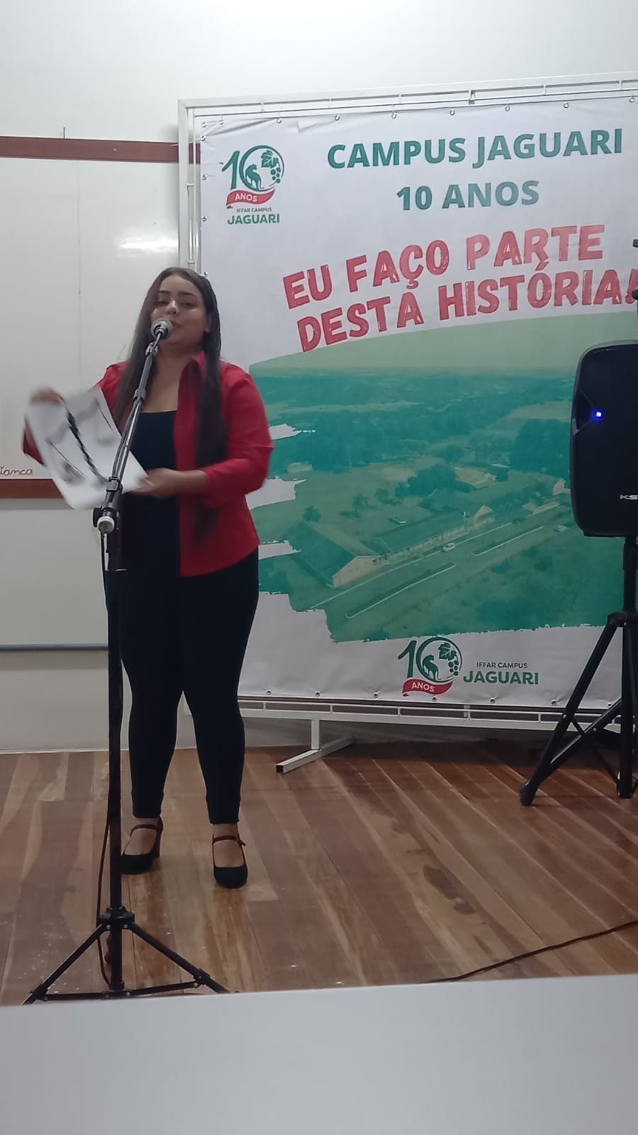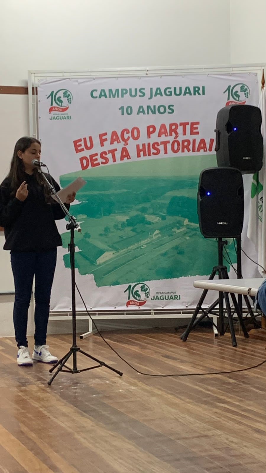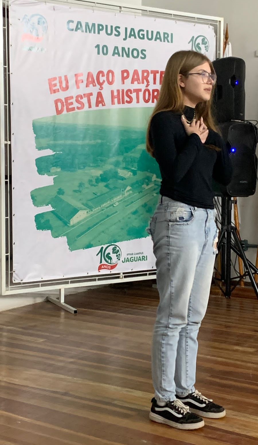 Aconteceu no dia 04 de outubro a Mostra Cultural etapa interna, com o objetivo de socializar e apresentar à comunidade diversas formas de expressão artístico-cultural presentes no Campus, os representantes classificados representarão o Campus Jaguari na 11ª Edição da Mostra Cultural 2023 do IFFar. Nesta 11º edição o evento acontece no final do mês de outubro nos dias 26 e 27, no Campus São Vicente do Sul. Ressaltamos que as obras deste ano trazem como temática: "Agenda 2030 - Objetivo Desenvolvimento Sustentável - Nº 16 - Paz, Justiça e Instituições Eficazes". Seguem os estudantes que se classificaram e irão representar o Campus Jaguari: