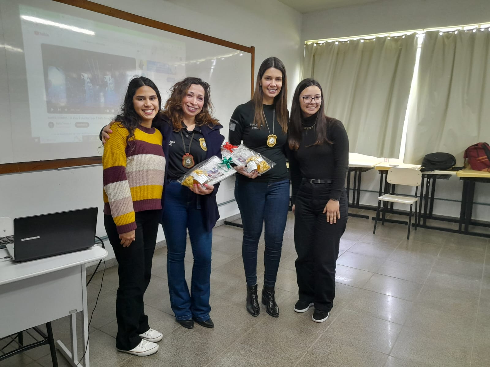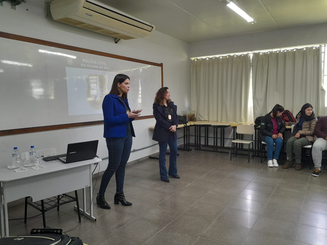 Agentes da Sala das Margaridas da Polícia Civil de Santiago realizam atividades relativas ao combate à violência contra a mulher no IFFar Campus Jaguari e CR Santiago