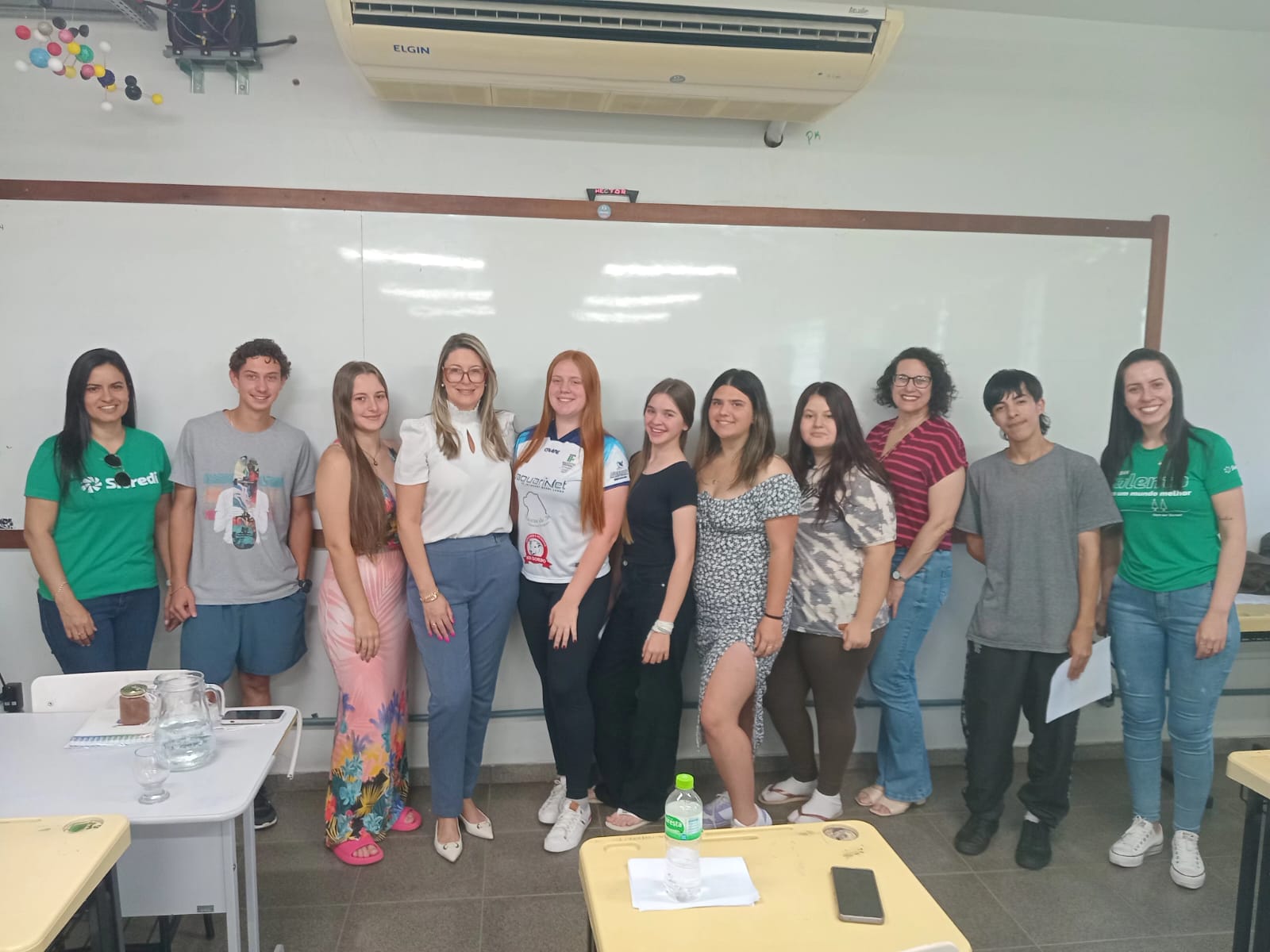 No dia 29 de outubro, os estudantes puderam participar de uma palestra com a psicóloga Adelita Picoli Sonza, gerente de Gestão de Pessoas do SICREDI Vale do Jaguari e Zona da Mata. Adelita compartilhou com os alunos estratégias valiosas para construir uma jornada profissional de excelência. Durante o encontro, a psicóloga abordou temas como competências e características essenciais para uma alta performance no mercado de trabalho, além de compartilhar insights sobre processos seletivos e a importância da proatividade no ambiente profissional. Com uma abordagem prática e motivacional, Adelita incentivou os estudantes a refletirem sobre suas próprias habilidades e atitudes, preparando-os para os desafios da vida profissional.