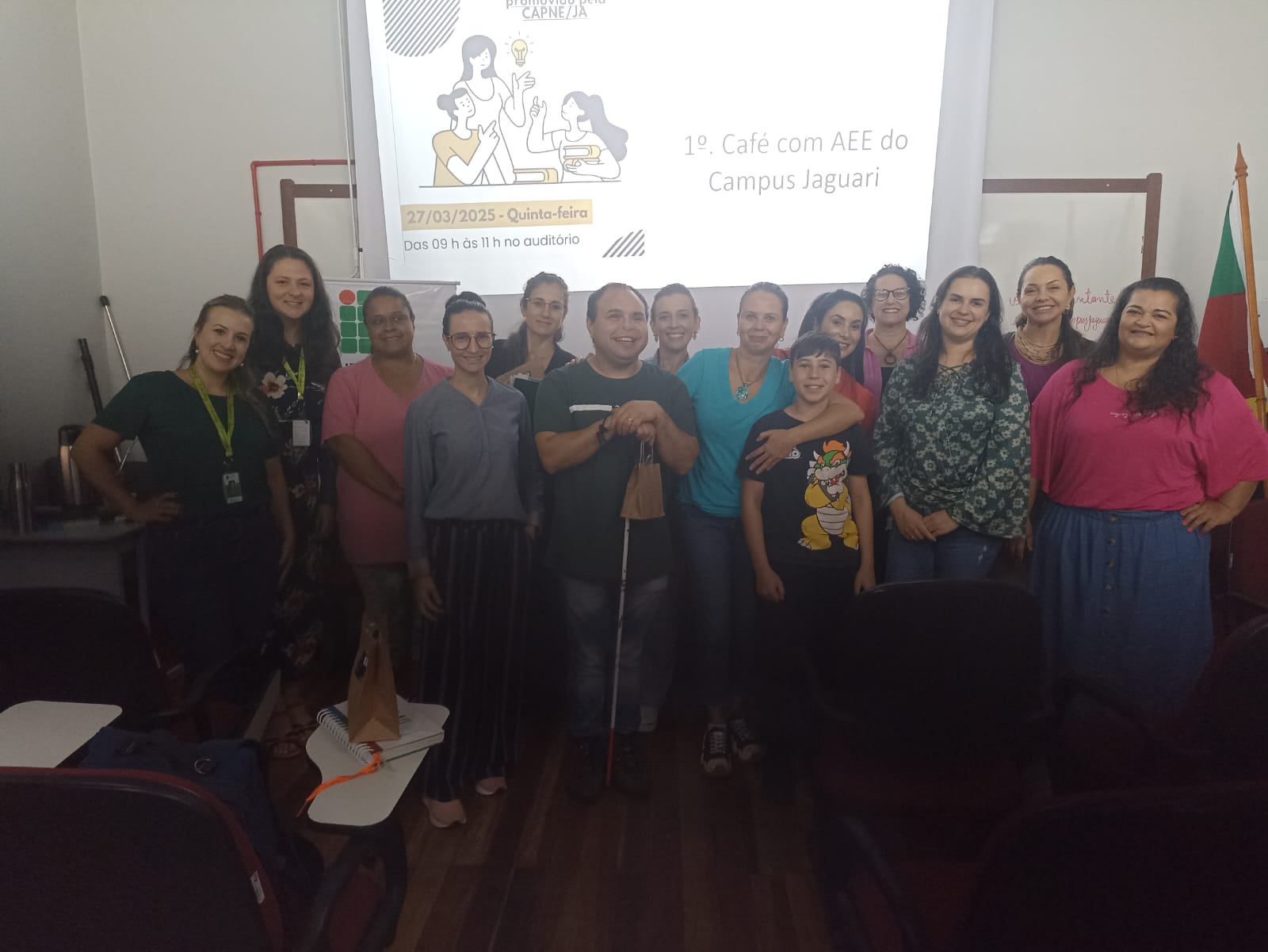 No dia 27 de março de 2025, a Coordenação de Apoio às Pessoas com Necessidades Educacionais Específicas (CAPNE) do Campus Jaguari realizou o evento intitulado “Café com Atendimento Educacional Especializado (AEE)”. O encontro formativo foi caracterizado por momentos de diálogo acerca dos processos de inclusão no campus Jaguari, além da discussão das demandas dos novos estudantes com Necessidades Educacionais Específicas a ação foi mediada pela professora Claudia Terra do Nascimento Paz.