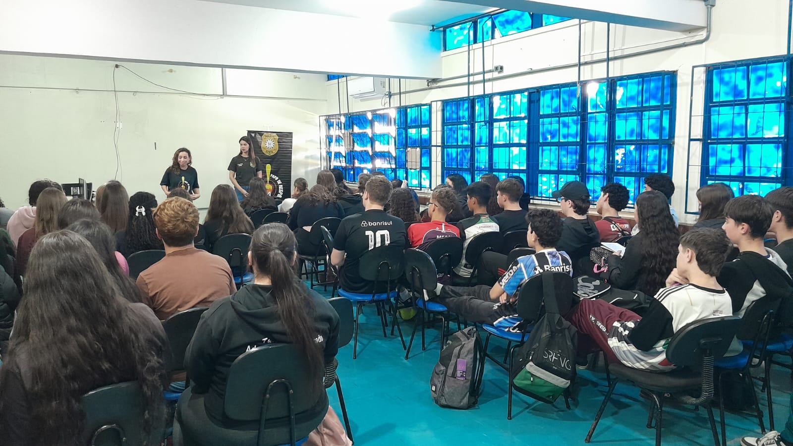 Nos dias 13 e 14 de maio, ocorreu a atividade Dos abusos cotidianos aos feminicídios: precisamos conversar sobre as violências contra as mulheres. A conversa, realizada no Campus Jaguari e no Centro de Referência do IFFar, em Santiago, foi conduzida pelas agentes da polícia civil de Santiago, Cíntia da Silva Moura e Suziane Aparecida de Lima, através do programa Papo de Responsa. A ação teve por objetivos informar, sensibilizar e estimular o debate sobre esse tema tão necessário.