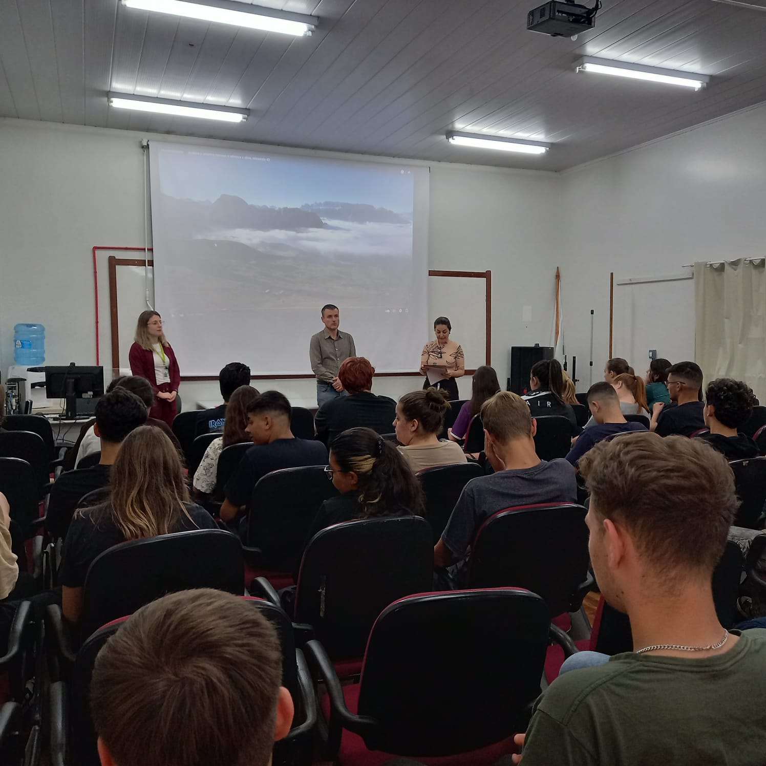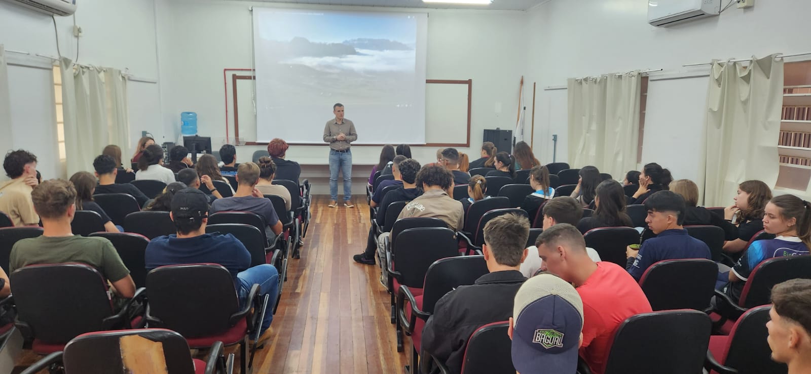 No dia 16 de outubro de 2025, o Campus Jaguari recebeu a presença do Defensor Público do município de Jaguari, Gustavo Catellan Ruffo, para dialogar com os estudantes da unidade sobre Bullying e Ciberbullying, com ênfase na atuação profissional do defensor em casos que envolvem violência escolar.