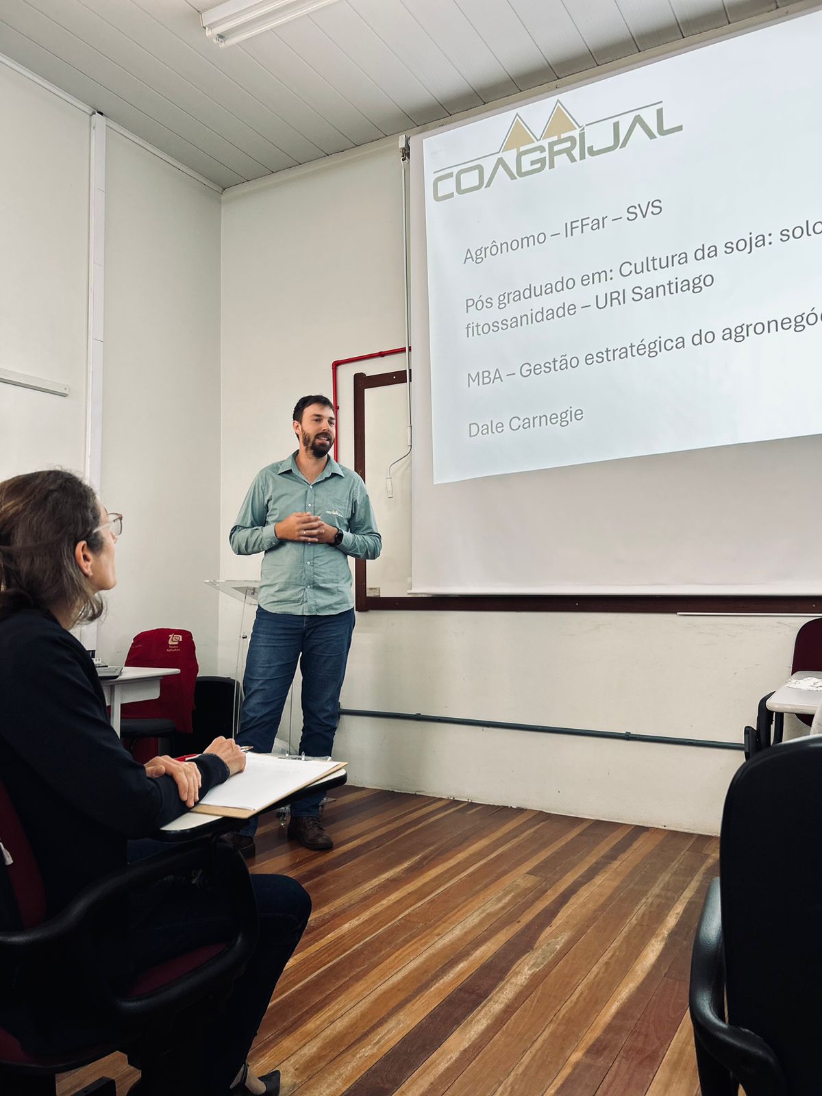 A palestra foi conduzida pelo Agrônomo Rodrigo Ivaniski Della Flora que atua na Coagrijal de Jaguari/RS.
