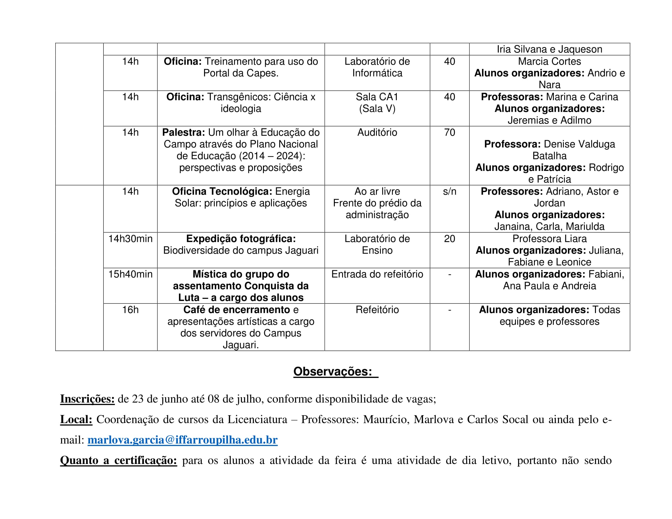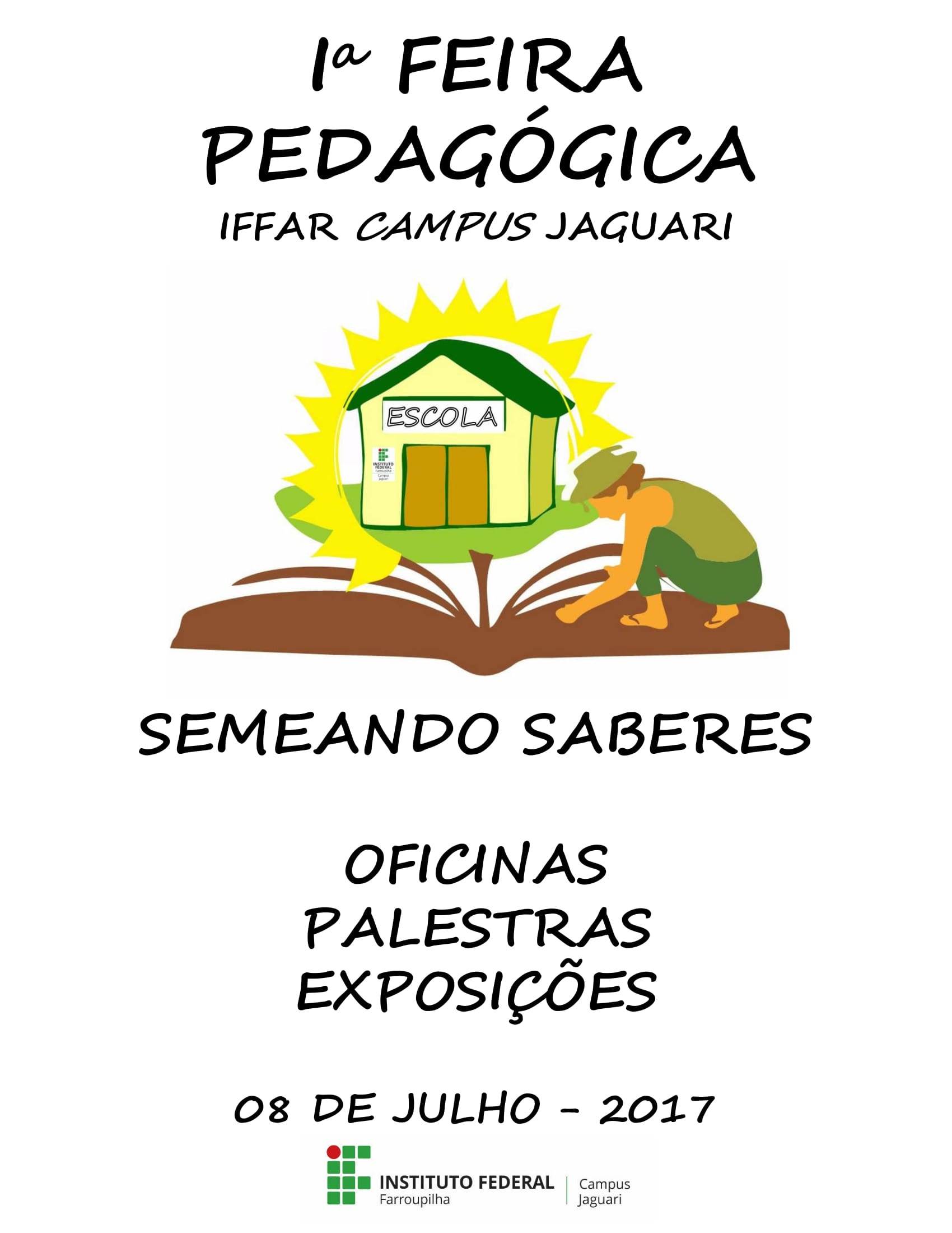 A 1ª Feira Pedagógica do Campus Jaguari será realizada no 08 de julho de 2017. O evento é promovido pelo curso de Licenciatura em Educação do Campo: Ciências Agrárias e Ciências da Natureza.