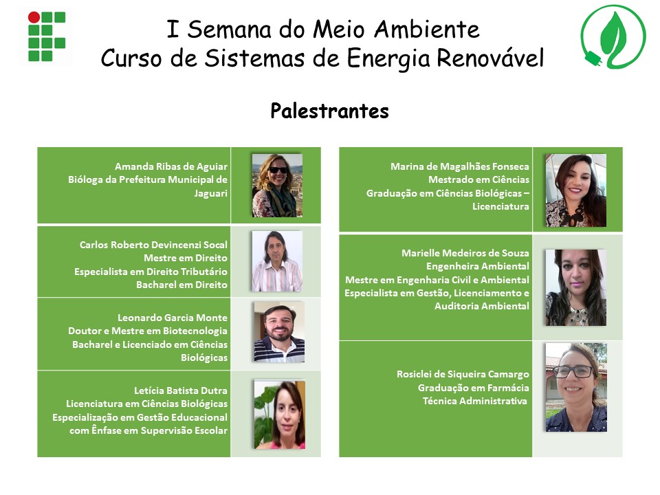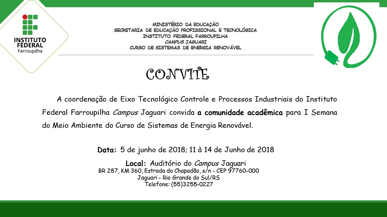 Página inicial > Jaguari > SEMANA DO MEIO AMBIENTE DO CURSO DE SISTEMAS DE ENERGIA RENOVÁVEL