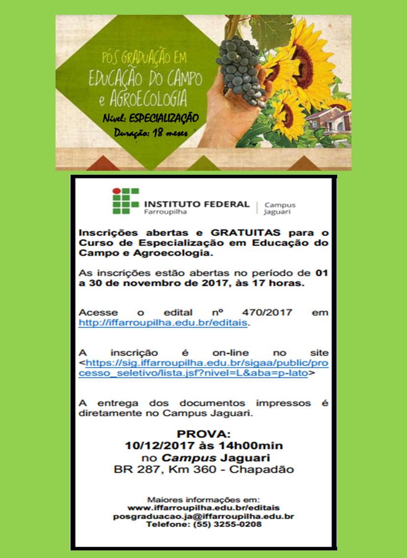 Tags: especializacao,campus jaguari,educacao do campo,inscricoes abertas