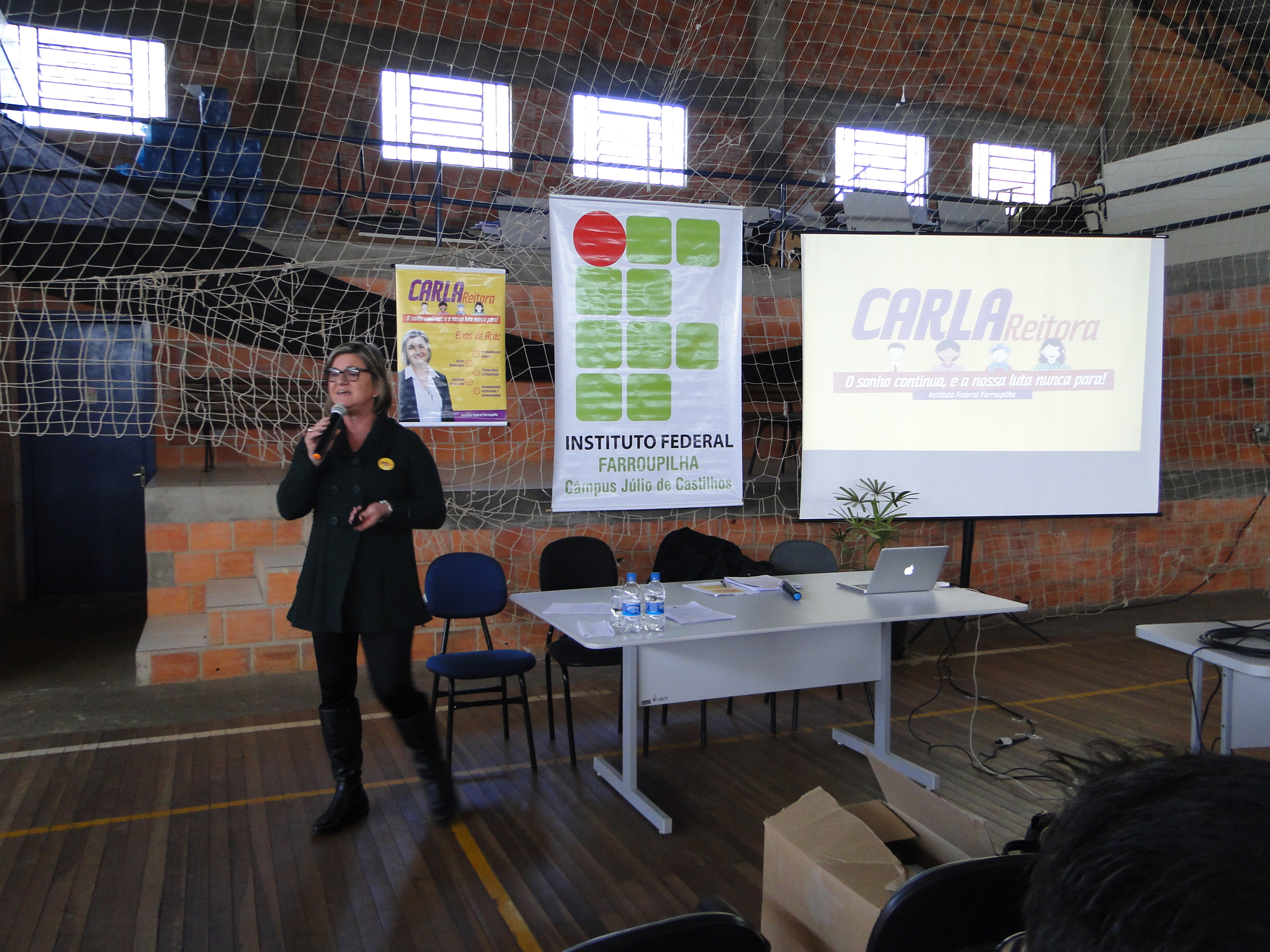 O Instituto Federal Farroupilha está em processo eleitoral, que finda com as eleições no dia 30 de junho. A professora Carla Comerlato Jardim é a única candidata a reitoria e esteve no Campus Júlio de Castilhos apresentando suas propostas na segunda-feira (13/06), a apresentação contou com a presença de servidores e estudantes e aconteceu em dois momentos durante o intervalo da tarde e da noite.