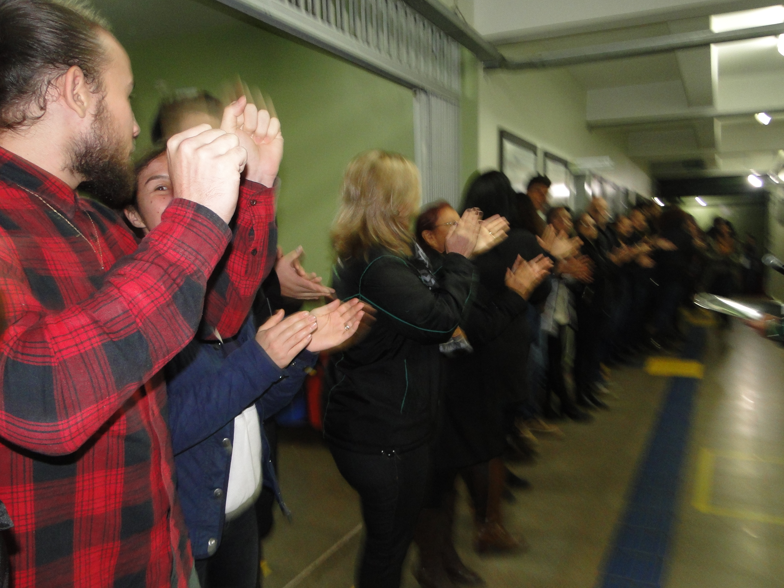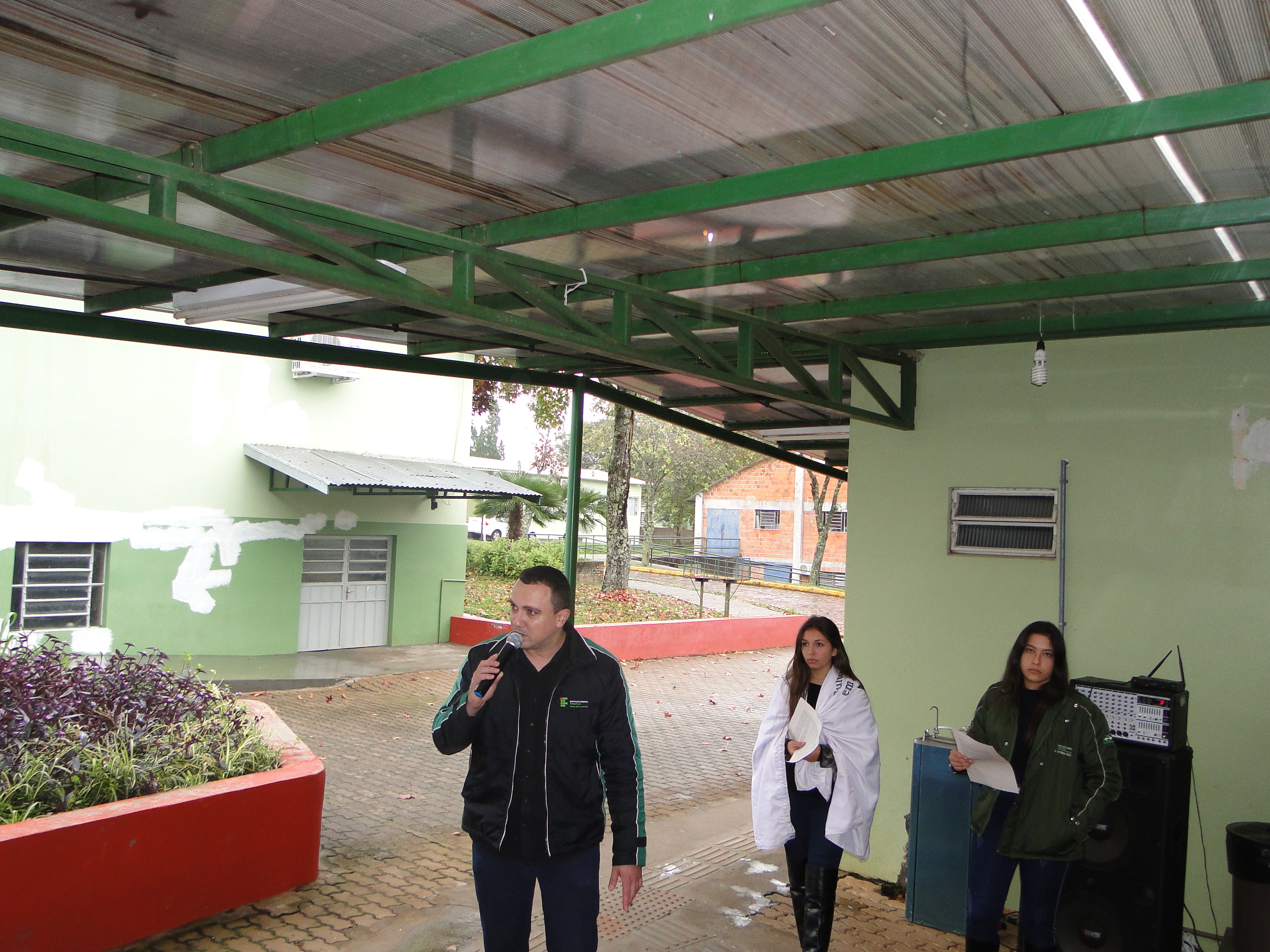 Ontem (13), estudantes, servidores reuniram-se, a pesar da forte chuva, no pátio de convivência do Campus para ato em defesa da educação pública federal. A partir da deliberação do Conif (Conselho Nacional das Instituições da Rede Federal de Educação Profissional, Científica e Tecnológica), todas as unidades do IFFar realizaram o abraço simbólico aos campi pela reversão dos cortes orçamentários.