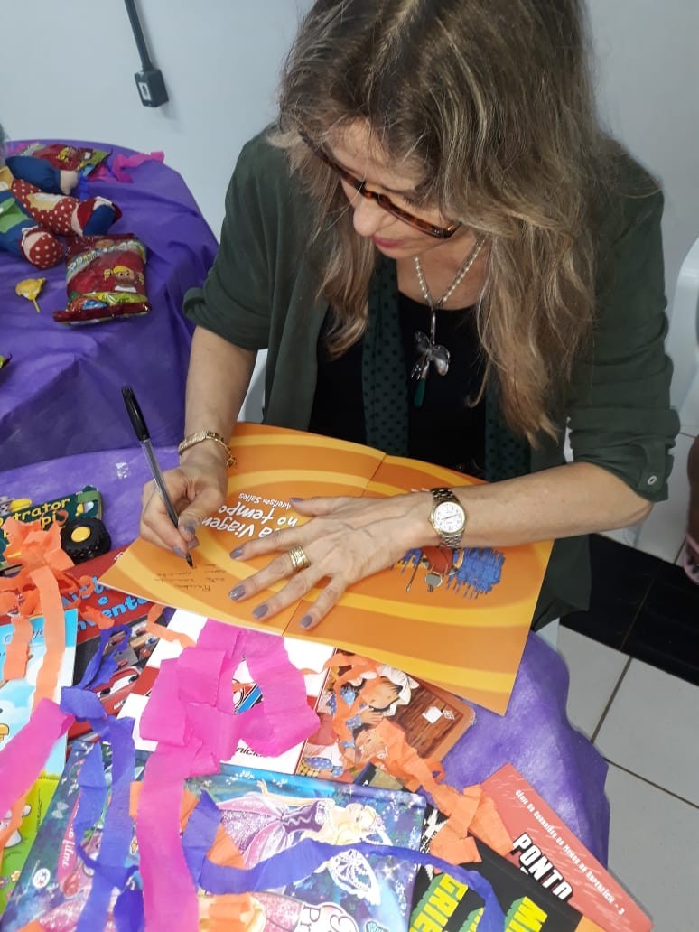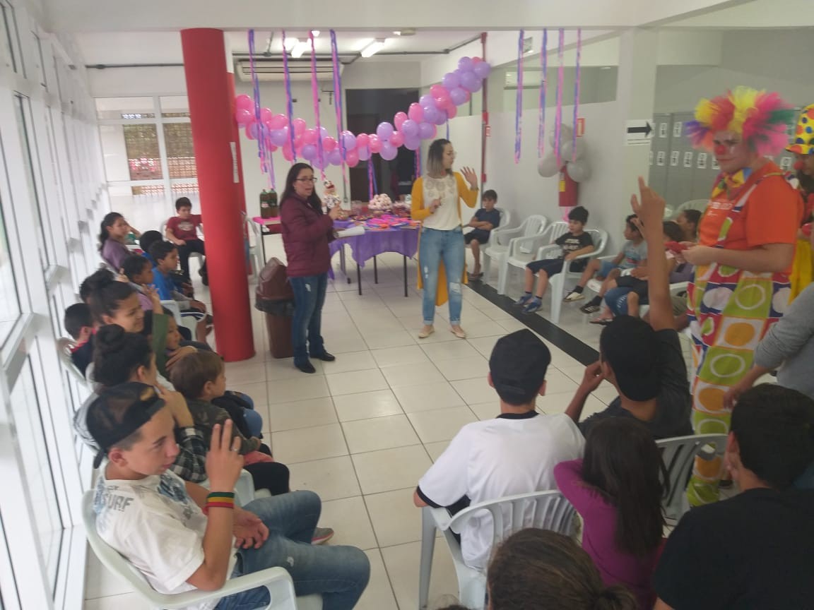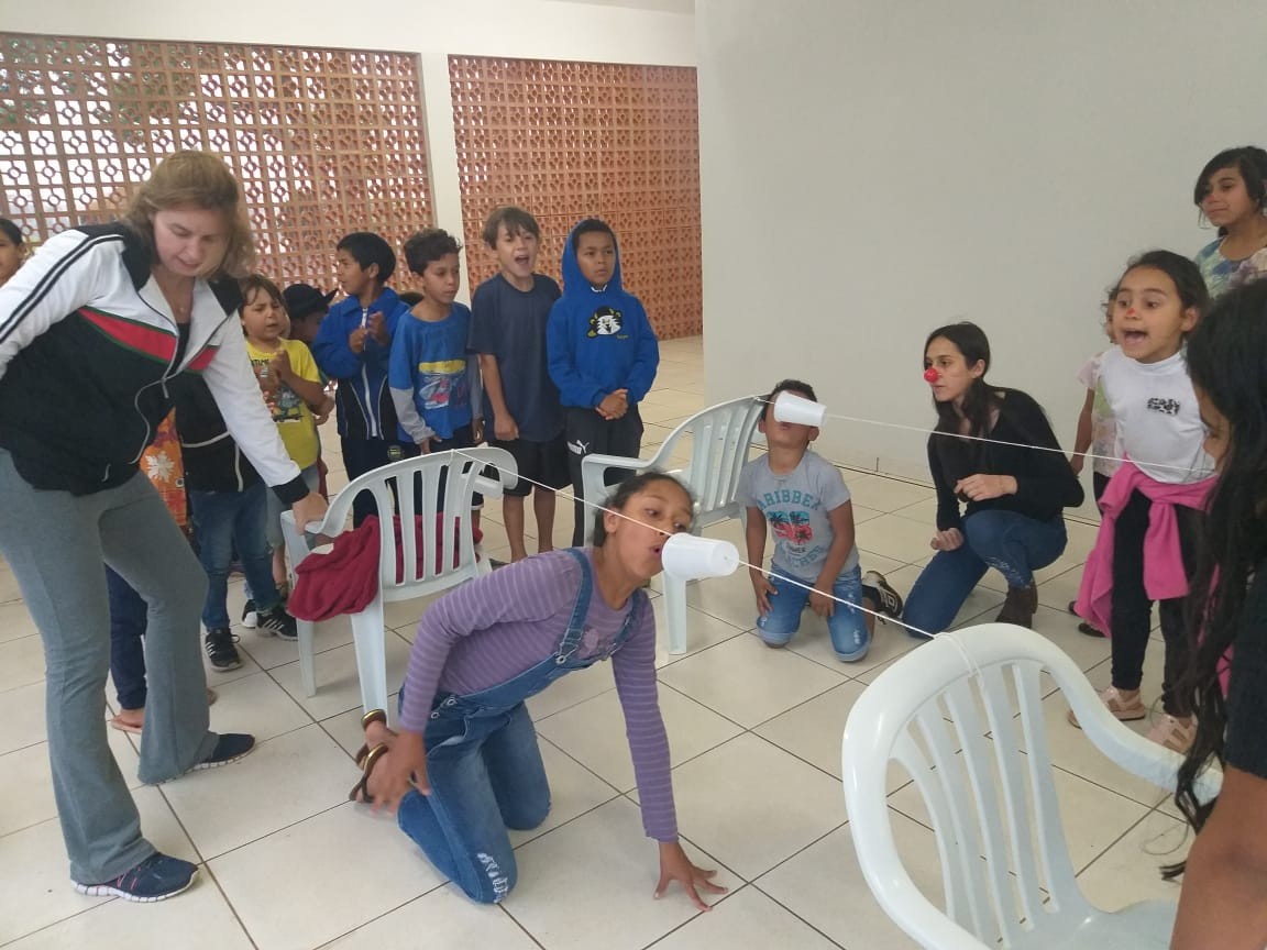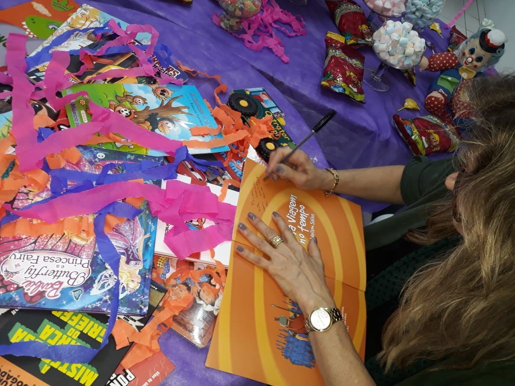 Muitas brincadeiras foram propostas às crianças, o que garantiu a diversão. Cada uma delas foi presenteada, de acordo com a idade, com um livro de histórias.