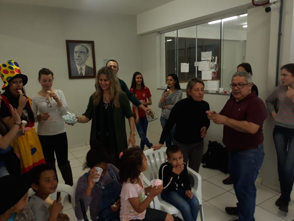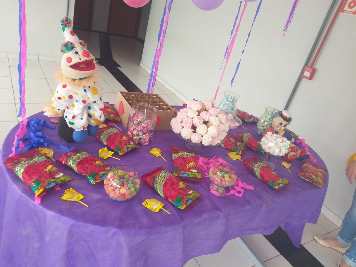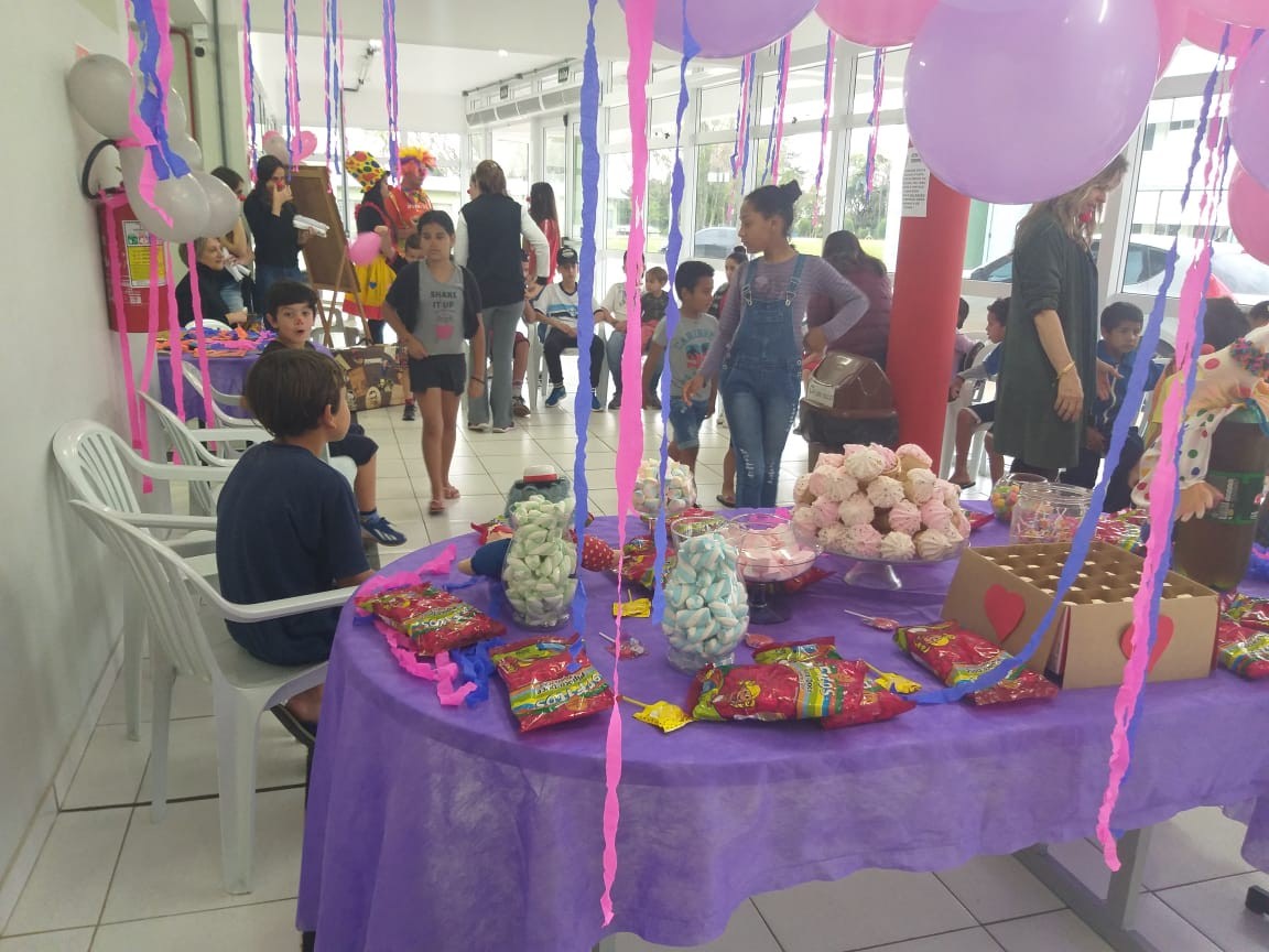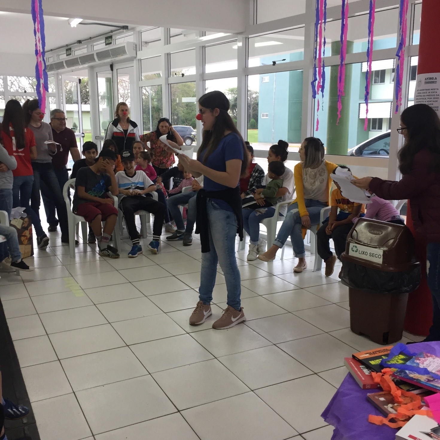 No dia 17 de outubro, foi festejado o dia da criança com os participantes do projeto Kombi Teca: leitura e Diversão, no hall da biblioteca do campus. As crianças foram recebidas em um ambiente preparado pela equipe e voluntários do projeto, com palhaços, balões, contação de história e muitos doces.