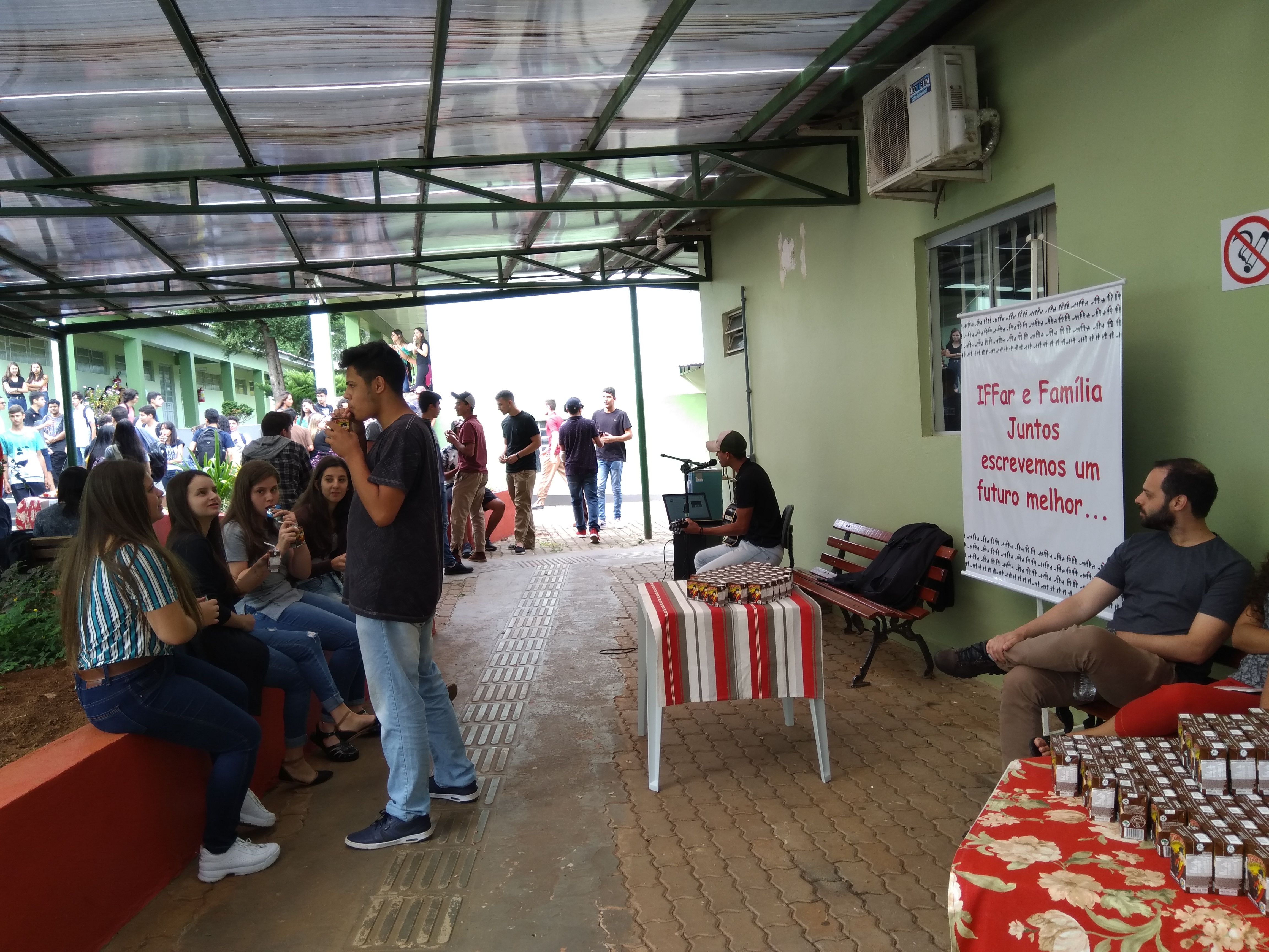 Na sexta-feira (14), durante a manhã, foi a vez de receber os veteranos dos segundos e terceiros anos. A atividade de integração foi programada pela CAE, aconteceu no pátio de convivência e contou com a apresentação musical do ex-aluno Leonardo Pacheco e após lanche. À noite, a Coordenação do Curso Técnico em Comércio recepcionou os estudantes do PROEJA, no anfiteatro do prédio administrativo.