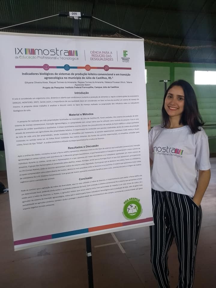 Taiza é acadêmica do Curso Bacharelado em Administração e egressa do curso superior de Tecnologia em Gestão do Agronegócio e apresenta o tema modo de preparo das Plantas Medicinais. Raquel é acadêmica do curso superior de Tecnologia em Produção de Grãos e também aborda o tema das plantas medicinais, porém sob o foco do uso da Fitoterapia como terapia complementar no tratamento da hipertensão. A Êmily é estudante do curso Técnico em Agropecuária Integrado ao Ensino médio e traz um depoimento sobre a sua participação no NEA. O Leandro é egresso do curso Técnico em Agropecuária Integrado ao Ensino Médio e acadêmico do curso Licenciatura em Ciências Biológicas e sua palestra é sobre o uso de agrotóxicos no Brasil e os efeitos na natureza e saúde humana.