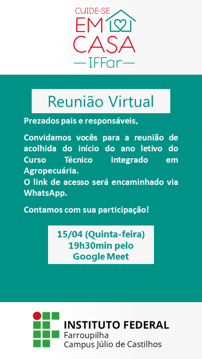 Página inicial > Júlio de Castilhos > IFFar Campus Júlio de Castilhos convida pais/responsáveis de alunos dos cursos técnicos integrados para reunião virtual