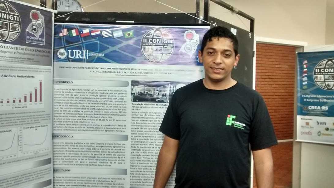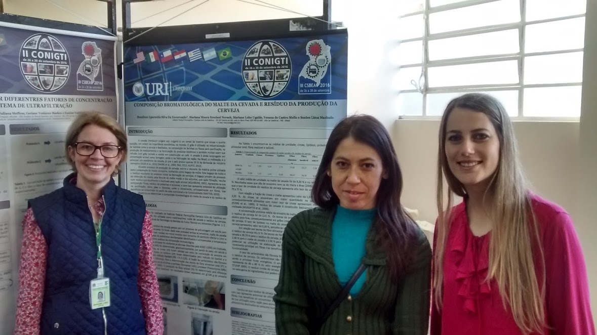De 26 a 28 de setembro de 2016 ocorreu o III Congresso Sul Brasileiro de Engenharia de Alimentos (CSBEA), que este ano foi realizado na URI – Campus Erechim. O Eixo Produção Alimentícia do campus Júlio de Castilhos participou do evento com a apresentação de 6 trabalhos na forma de pôsteres, referentes aos projetos de pesquisa e atividades de ensino desenvolvidos pelo mesmo: