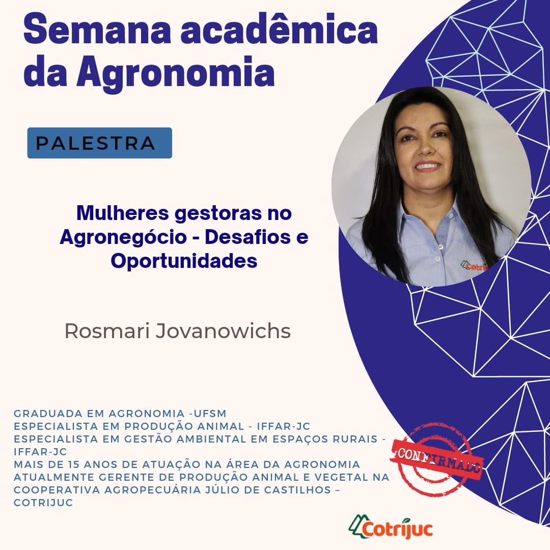 Inicia hoje (07) a II Semana Acadêmica do Curso de Agronomia do Instituto Federal Farroupilha - Campus Júlio de Castilhos. A programação envolve palestras, oficinas e roda de conversa. Confira a programação abaixo: