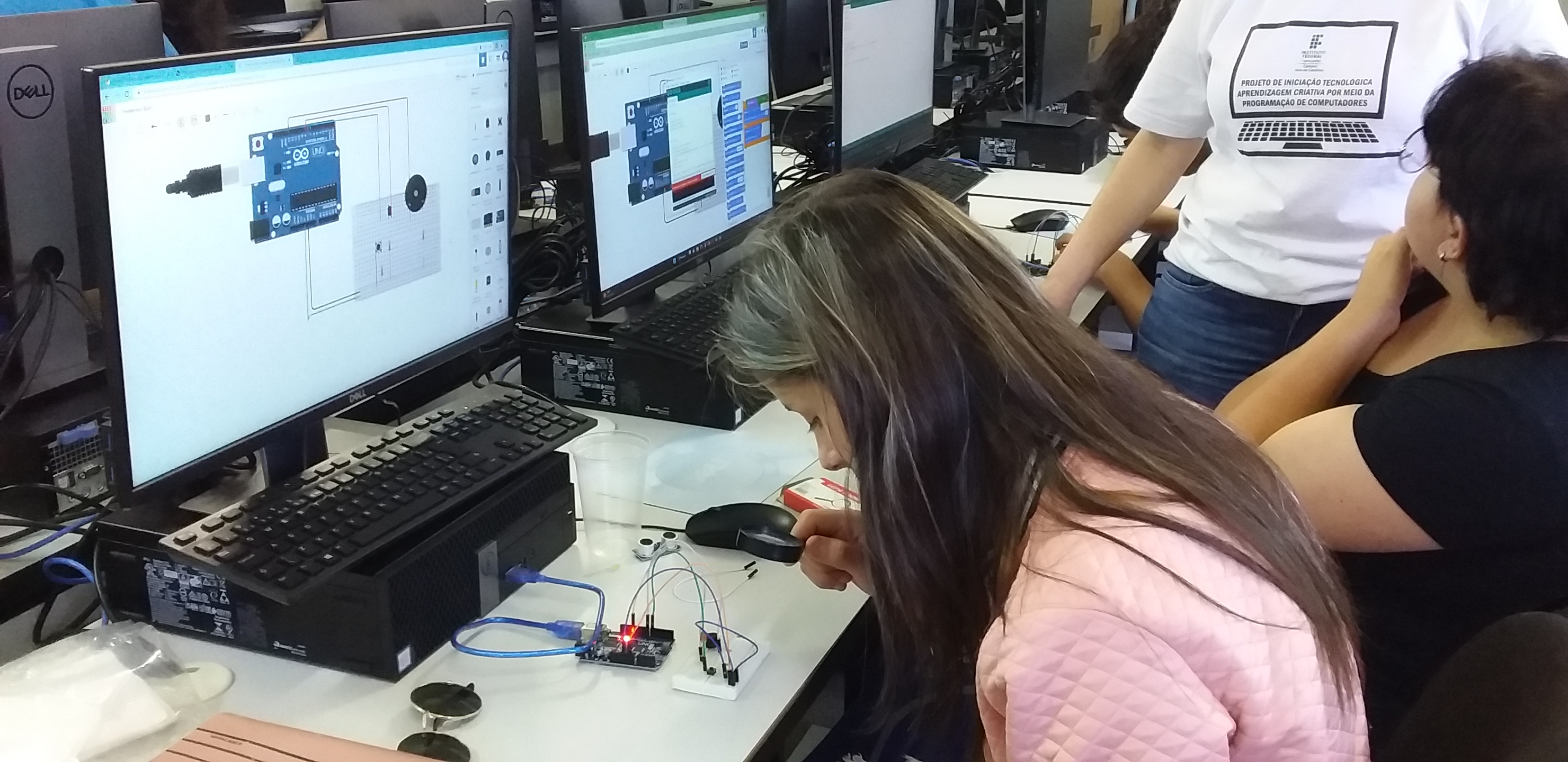 O projeto Aprendizagem Criativa por meio da Programação de Computadores foi aprovado na Chamada Pública IFES nº 01/2021 com o apoio da Secretaria de Educação Profissional e Tecnológica – SETEC e teve como objetivo desenvolver a iniciação tecnológica, por meio de oficinas, através da programação aplicada para estudantes do 8° e 9° ano do ensino fundamental.