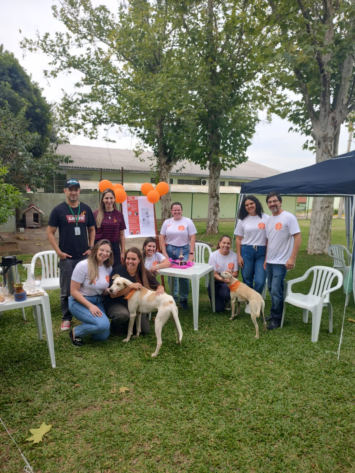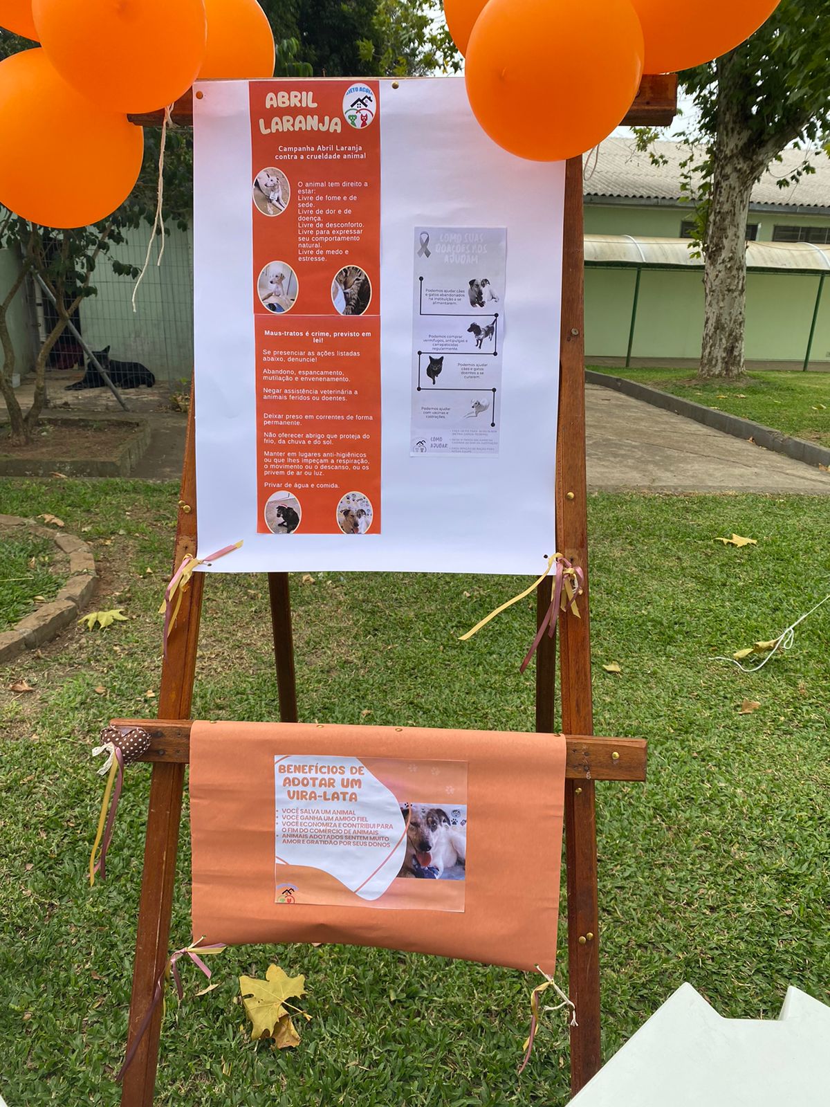 Junto com a feira, ocorreu o lançamento da Campanha Abril Laranja de prevenção contra a crueldade animal, realizada no IFFar Campus Júlio de Castilhos, pela equipe do Projeto de extensão “Acolher”, que é coordenado pela servidora Betina Garcia.