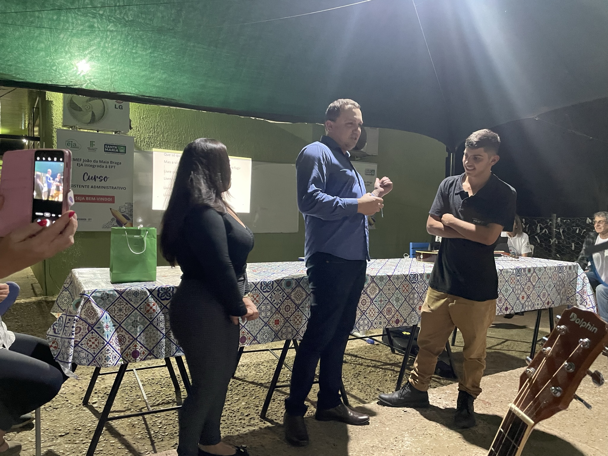 Na noite de ontem (24/05) aconteceu a Aula Inaugural do curso de Assistente Administrativo na escola João da Maia Braga. A diretora, Lozecler Moro falou da importância do curso e da educação de jovens e adultos (EJA) para oportunizar a comunidade uma nova chance de estudar e se inserir no mundo do trabalho. “A EMEF João da Maia Braga é considerada uma escola do campo, agrega características tanto urbanas quanto rurais. A comunidade é diversificada e, tira seu sustento de atividades voltadas à prestação de serviços, agricultura familiar e de empregabilidade no frigorífico localizado na região.”