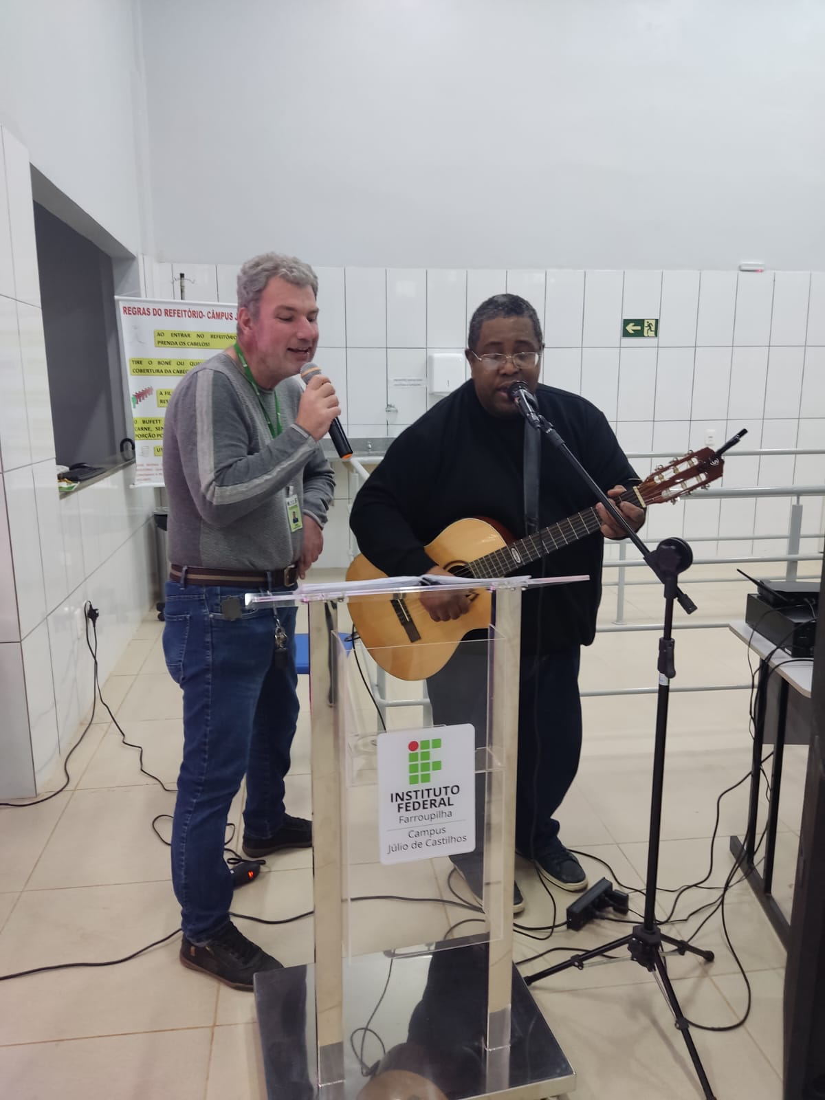 Após a cerimônia teve música ao vivo com o professor Ale e o servidor Ciro Adilson Atzler e foi servido um café da tarde para todos/as.