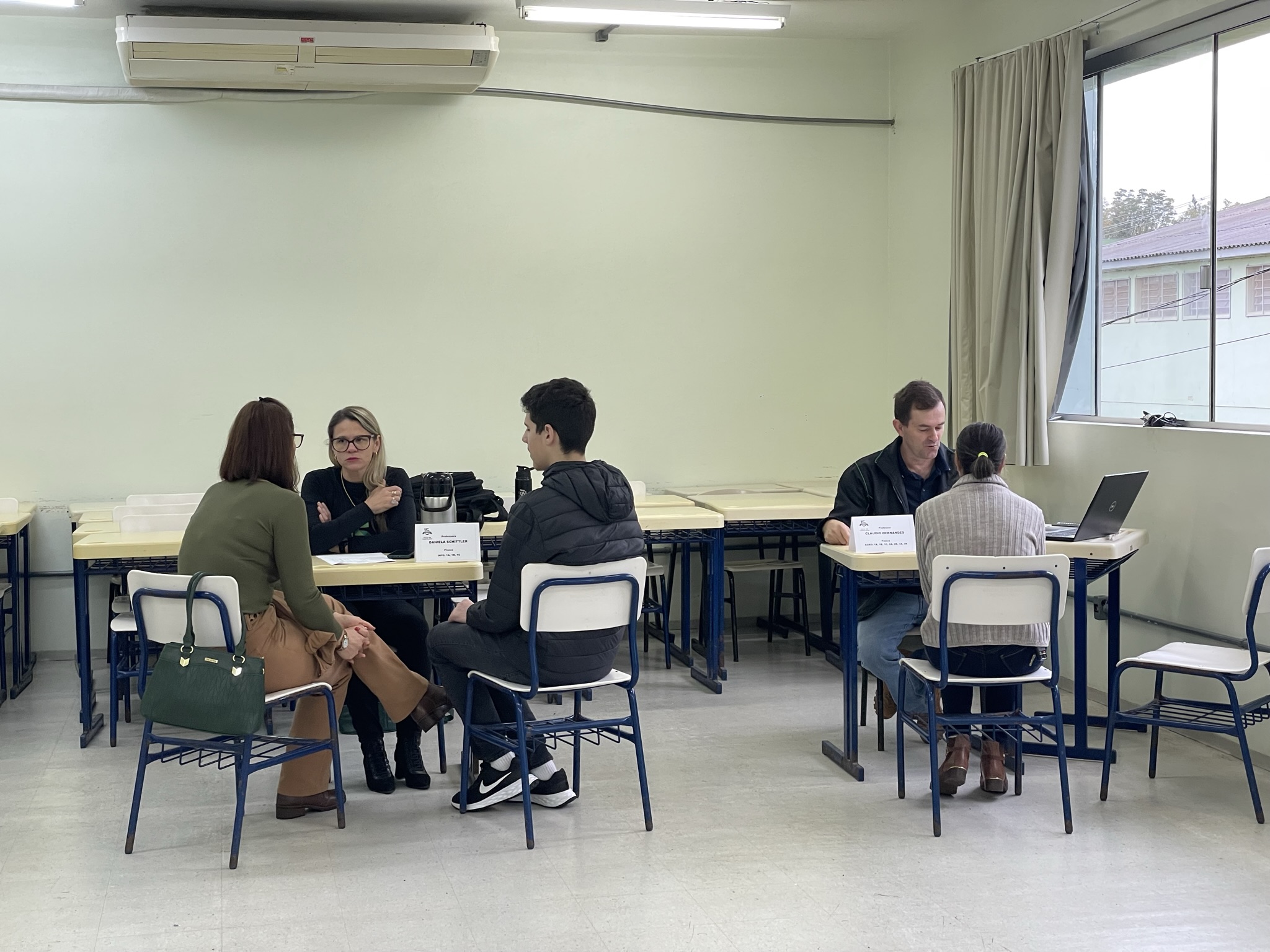 Na manhã do último sábado (27/05) aconteceu a segunda reunião de pais/mães do ano letivo de 2023. Os/as responsáveis conversaram com os/as professores/as para receber um feedback de como os/as estudantes estão indo. Após foram recebidos no novo refeitório com um lanche.