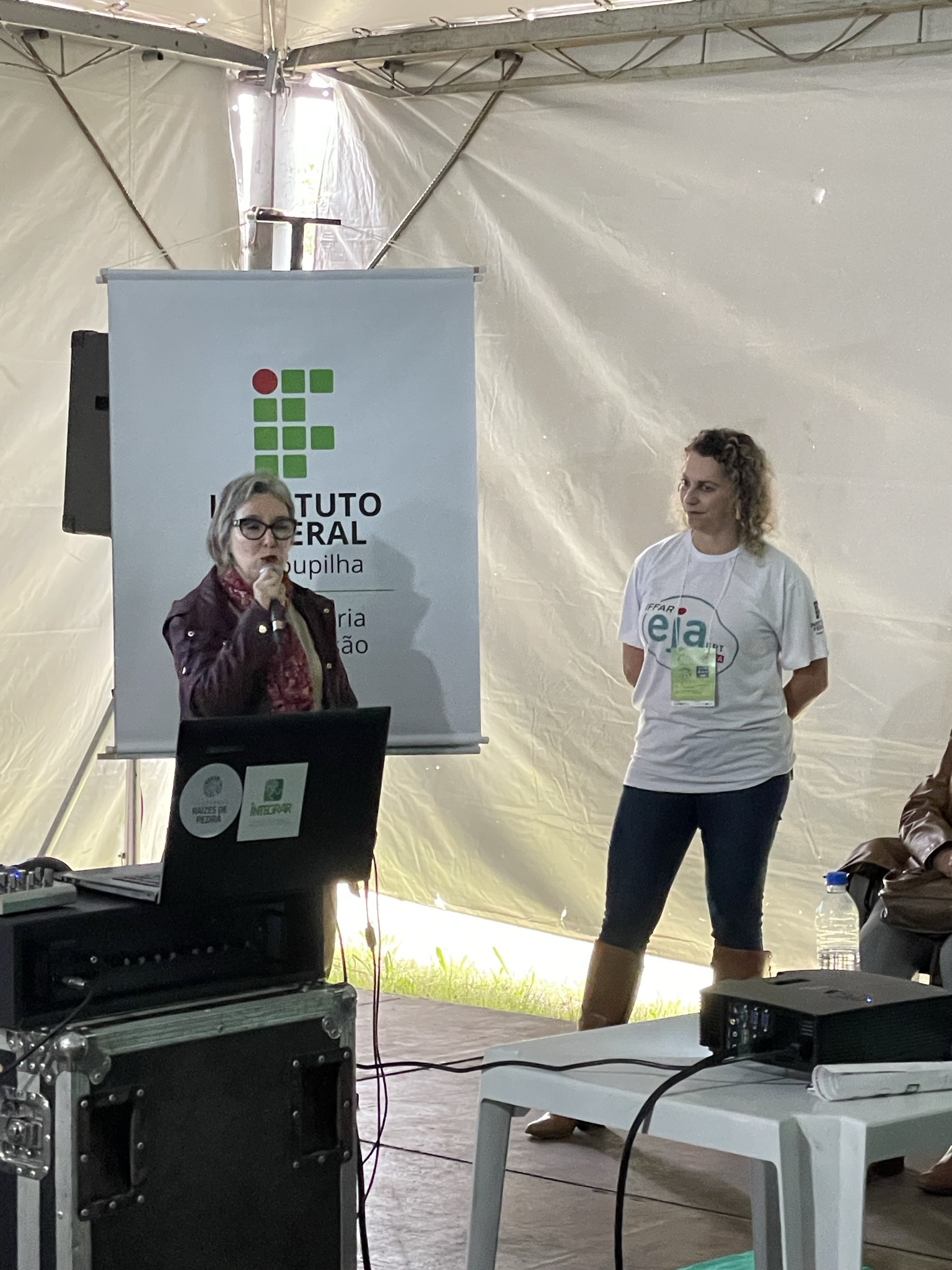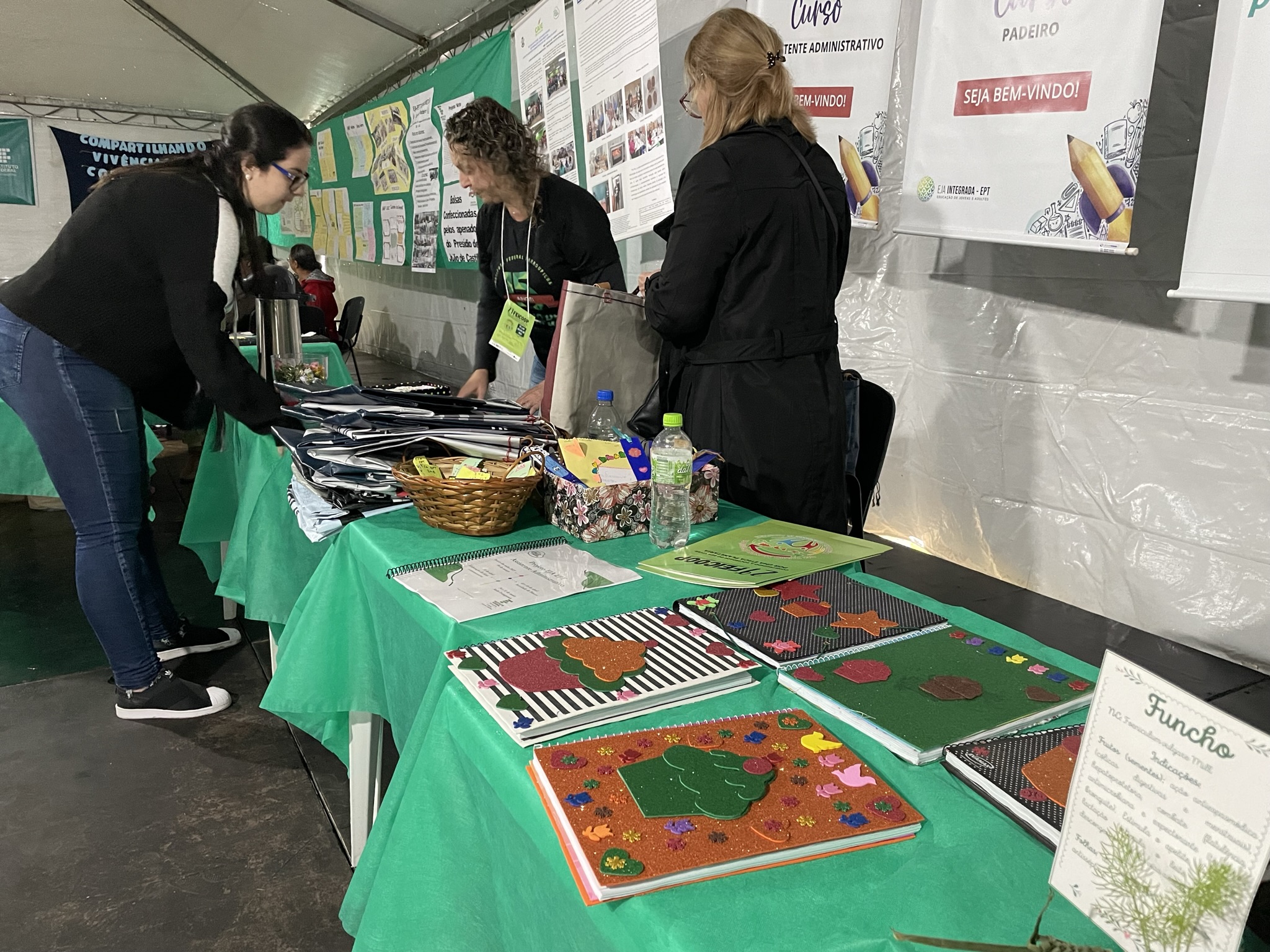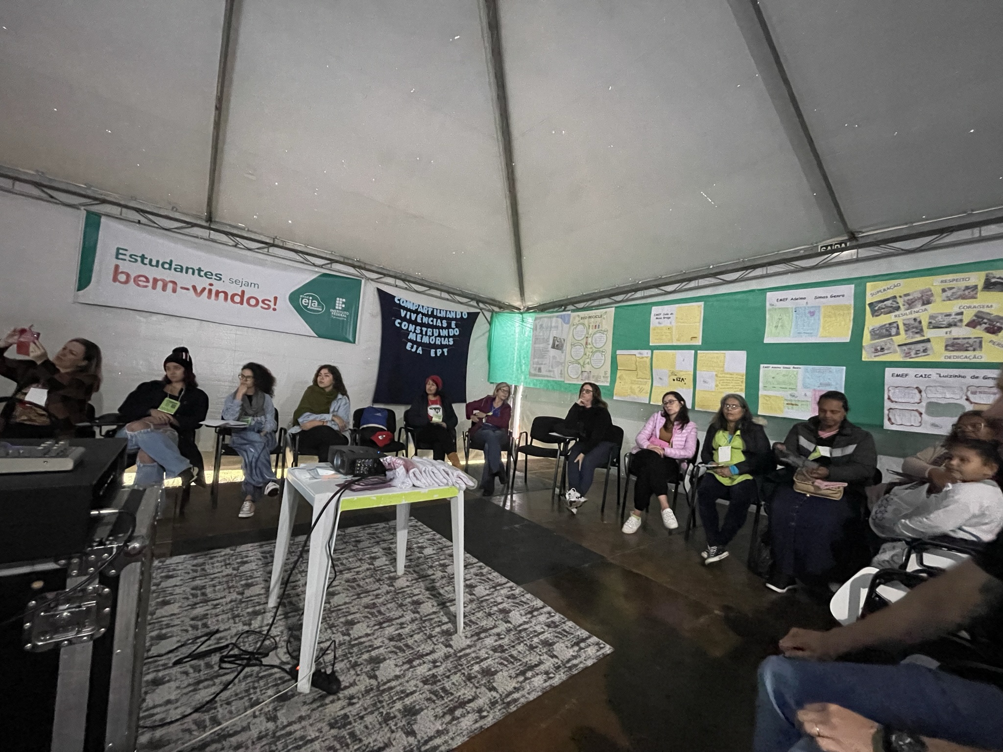 Durante a tarde sábado aconteceu a roda de conversa, “Compartilhando vivências e construindo memórias da EJA/EPT”. Estiveram presentes professores/as, estudantes, coordenadores/as da EJA no IFFAR. Cleia Tonin destacou a importância da EJA e a felicidade em estar em uma feira que é referência há 29 anos. A atividade foi coordenada pela diretora de ensino, Silvia Montagner, a coordenadora de ensino. Cleonice Graciano e a professora Rosângela Soares. Os estudantes vieram do próprio campus, do curso de comércio e de escolas parceiras como o Irmão Quintino, Flory Kruel, Caic Luizinho de Grandi e Hélio Salles, dos cursos de assistente administrativo e padeiro.