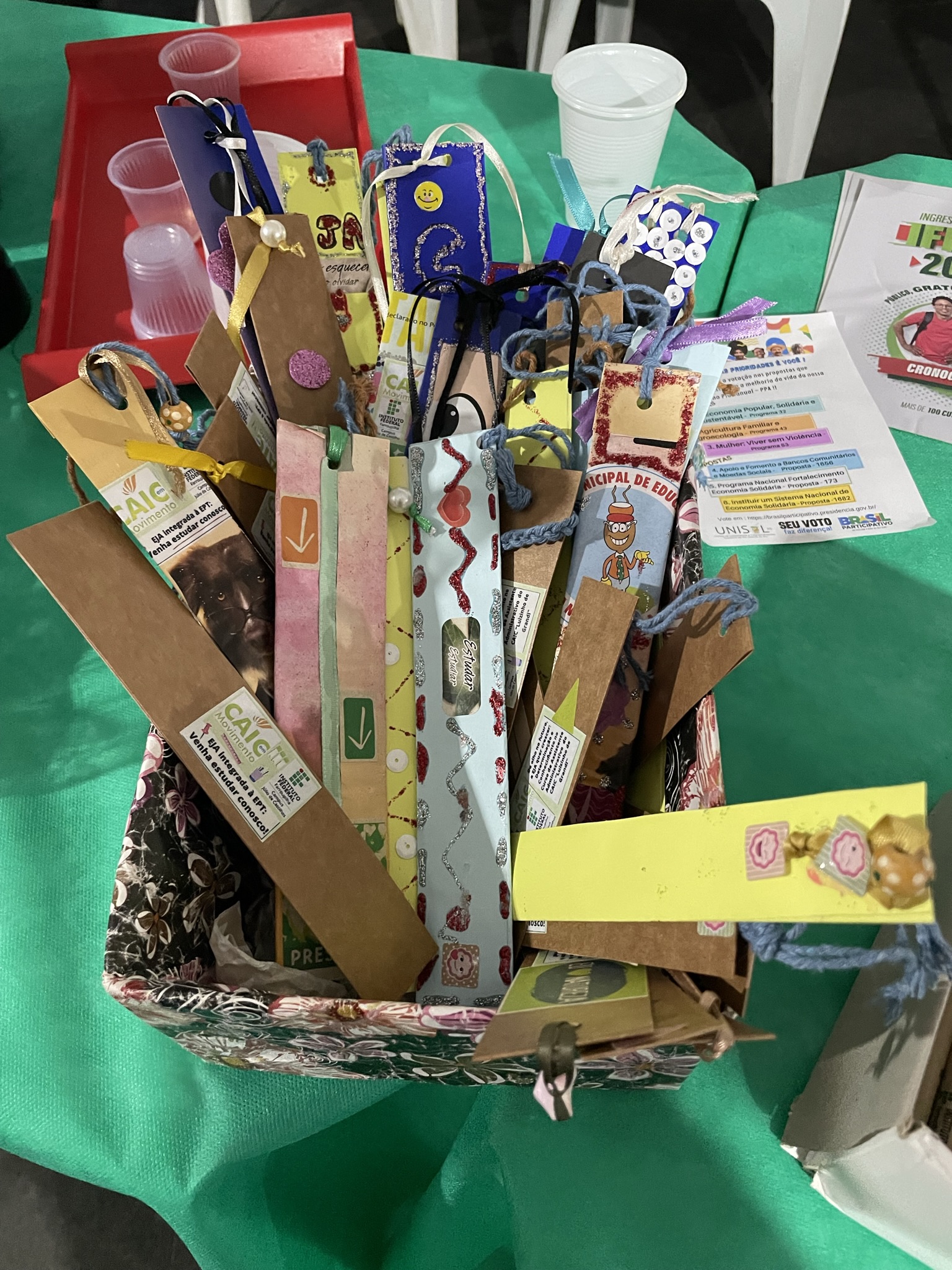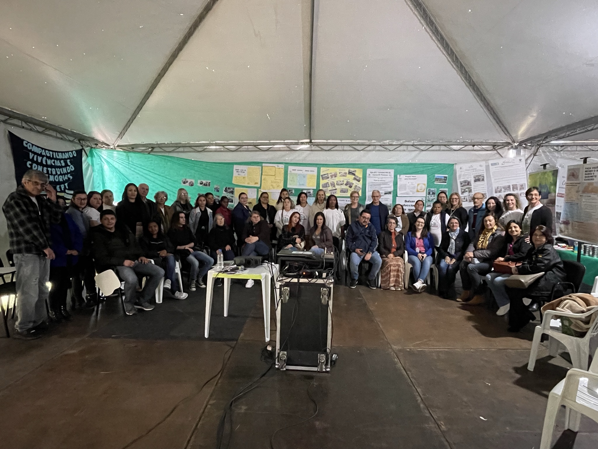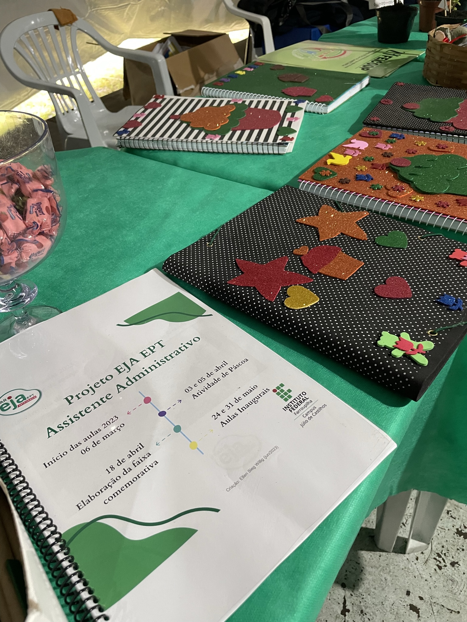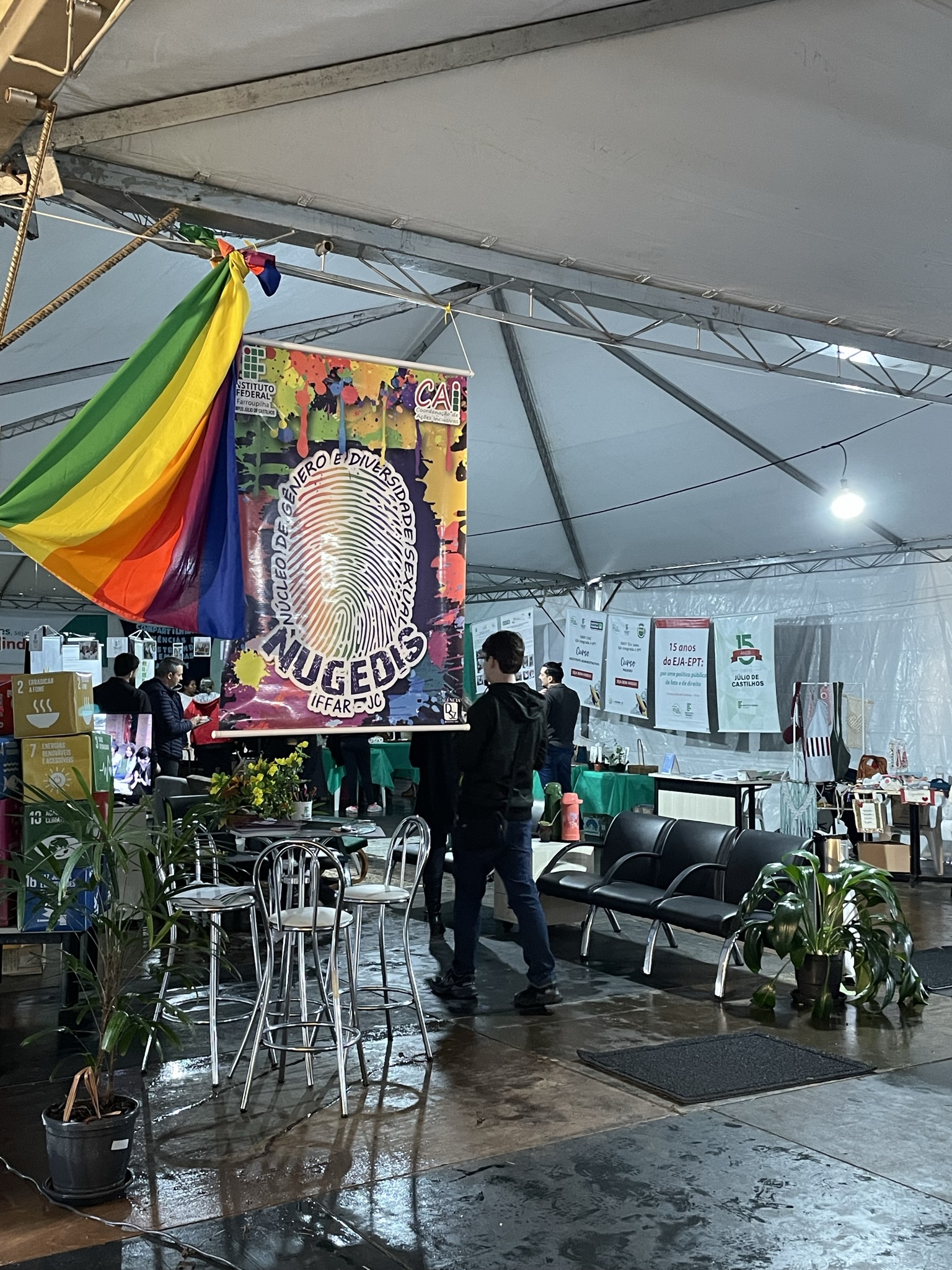 Durante a tarde sábado aconteceu a roda de conversa, “Compartilhando vivências e construindo memórias da EJA/EPT”. Estiveram presentes professores/as, estudantes, coordenadores/as da EJA no IFFAR. Cleia Tonin destacou a importância da EJA e a felicidade em estar em uma feira que é referência há 29 anos. A atividade foi coordenada pela diretora de ensino, Silvia Montagner, a coordenadora de ensino. Cleonice Graciano e a professora Rosângela Soares. Os estudantes vieram do próprio campus, do curso de comércio e de escolas parceiras como o Irmão Quintino, Flory Kruel, Caic Luizinho de Grandi e Hélio Salles, dos cursos de assistente administrativo e padeiro.