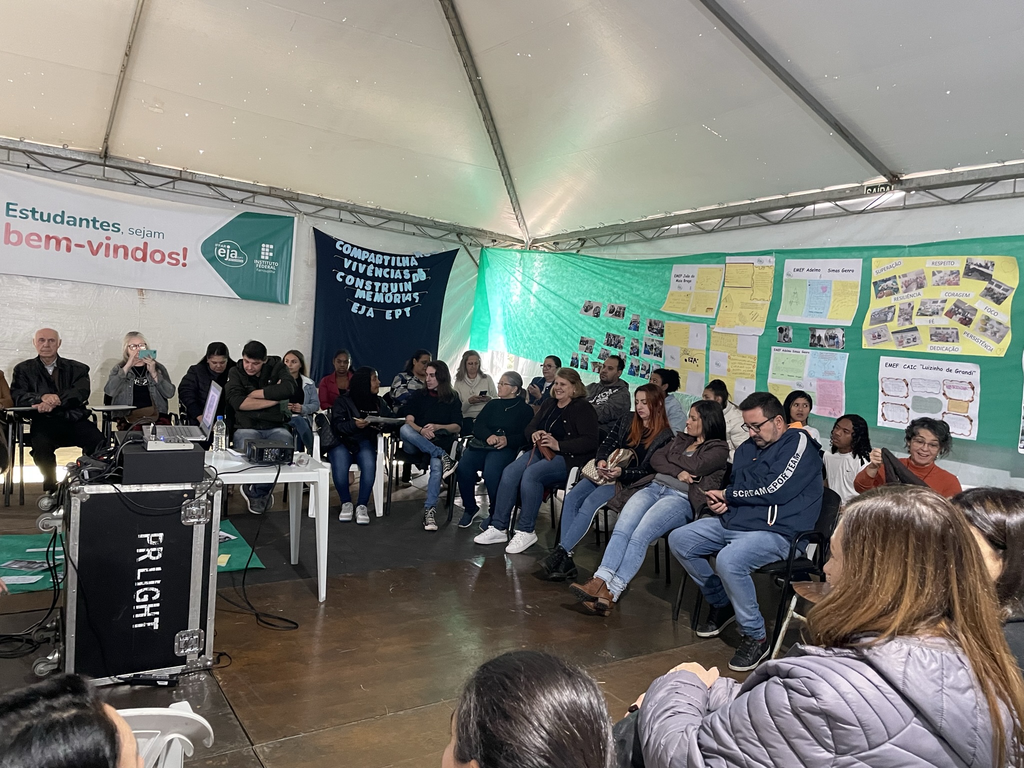 A professora Jaqueline, do Flory Kruel, enfatizou que EJA é oportunidade, basta querer e que os/as estudantes devem ir em busca de seus objetivos e pode abrir a vida para novos horizontes. Uma aluna Maria contou que voltou a estudar fazendo o ensino fundamental e agora está terminando o ensino médio e técnico. Outra aluna destacou que parou de estudar aos 9 anos, pois precisou trabalhar e retornou à escola aos 58 anos, quando se descobriu depressiva.