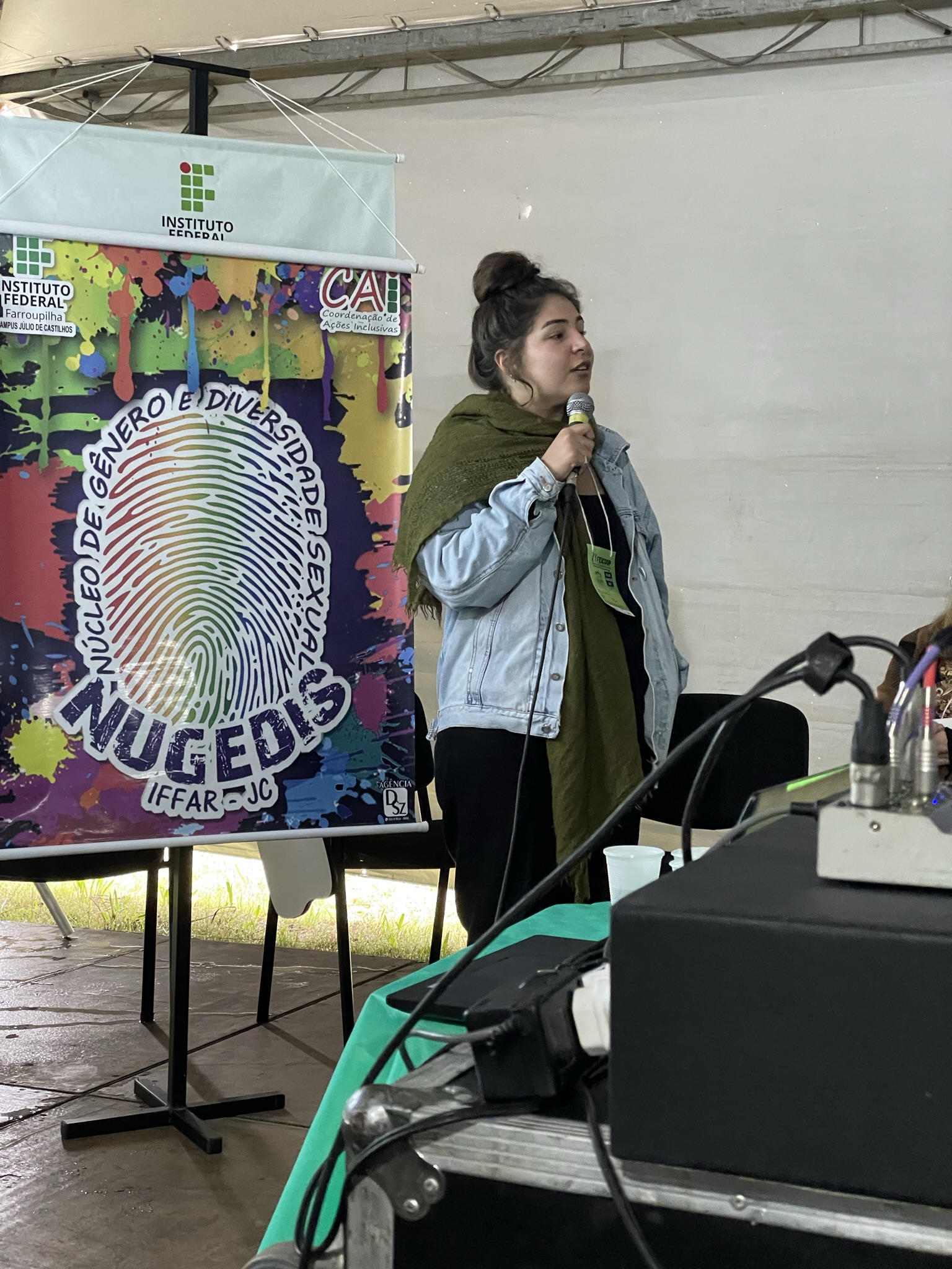 A participação do Campus começou na sexta-feira com a palestra “Eu preciso do feminismo?”, com a presidenta do Nugedis, Alice de Souza Ribeiro. Ela começou sua fala relembrando o conceito de feminismo, as lutas do movimento e suas conquistas, como o direito ao voto e até, recentemente, quando a mulher conseguiu o direito de colocar o DIU sem a necessidade da permissão do marido.
