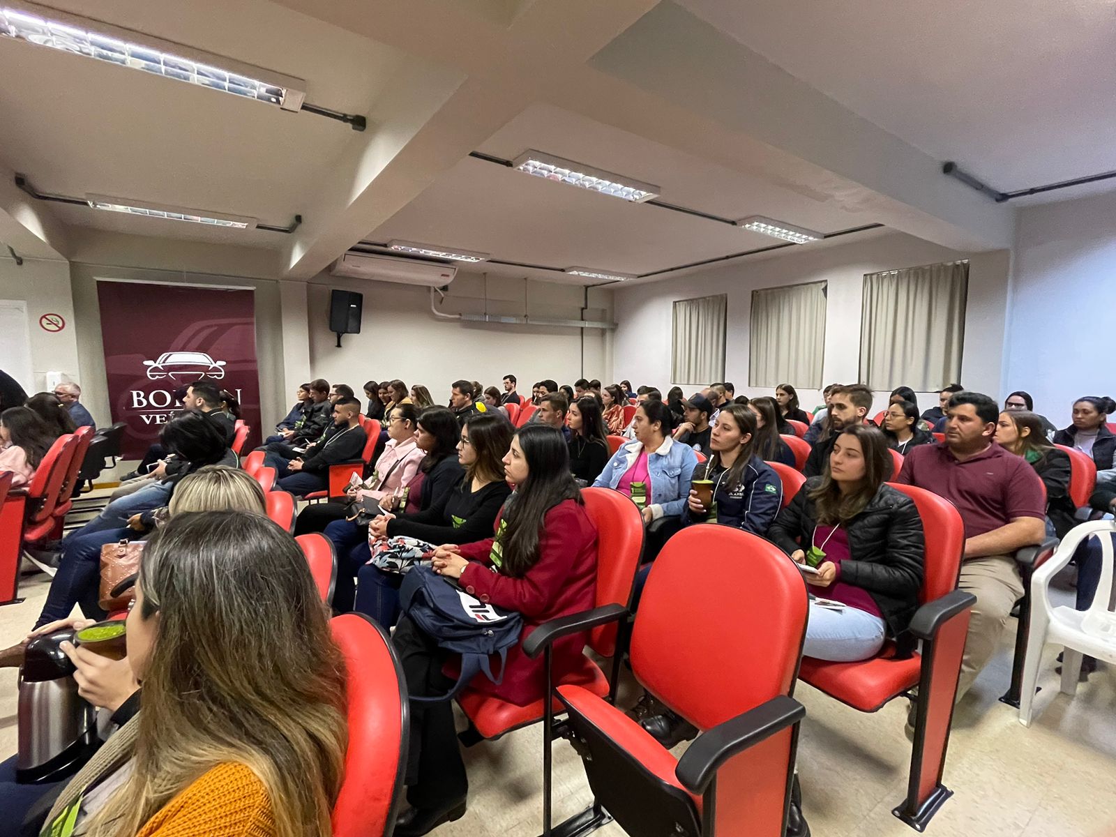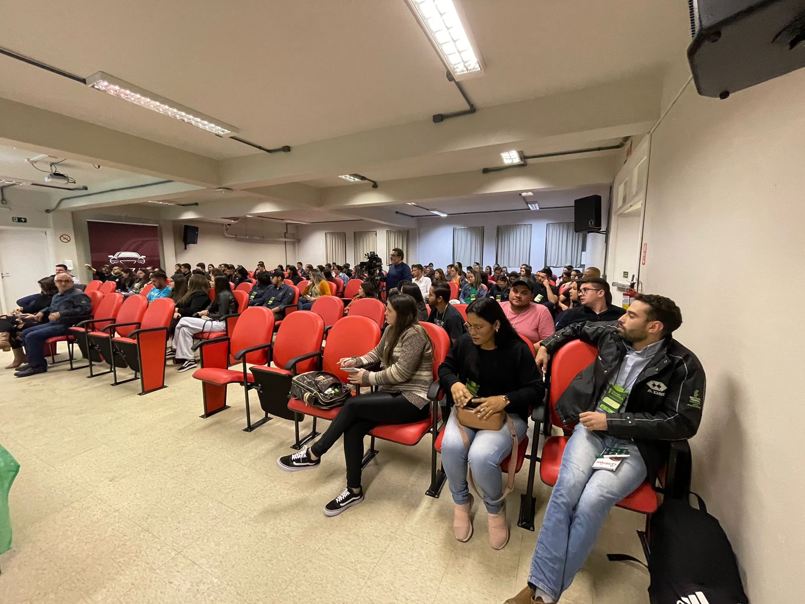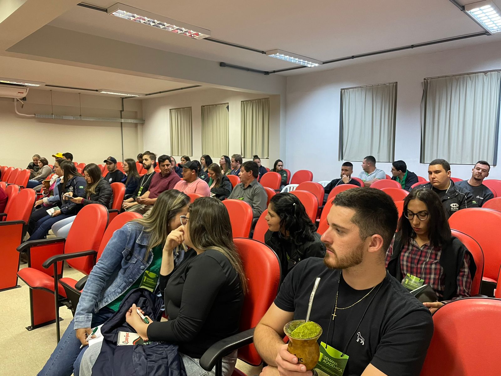 A diretora de ensino, Sílvia parabenizou o diretório acadêmico da Gestão do Agronegócio pela iniciativa, pela programação e pelo trabalho, levando o nome do curso para a comunidade. “Serão três dias de atividades enriquecedoras, atendendo o interesse e a necessidade de vocês. É bom ver o espaço cheio de alunos/as comprometidos em estarem aqui na semana acadêmica”, falou a diretora, que ainda ressaltou que firmar parcerias com empresas é bom para a formação, abre portas para estágios, empregos e networking.