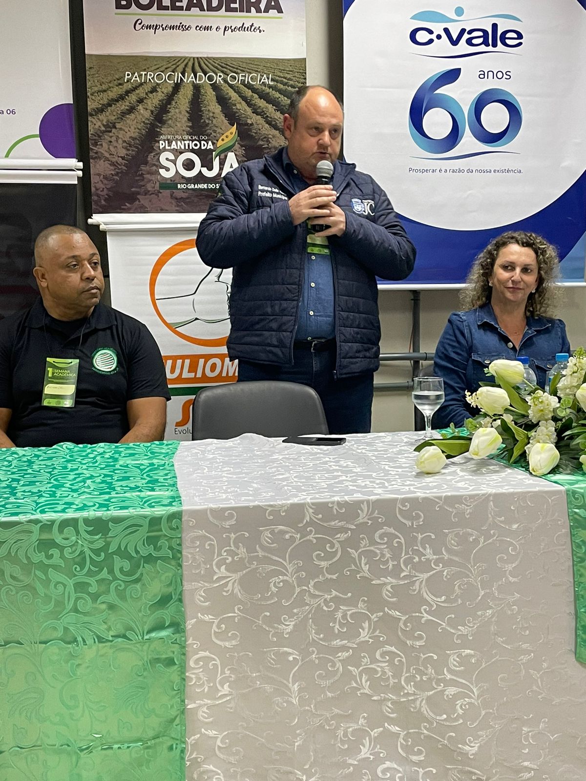 Na sequência foi a vez do prefeito falar, ele ressaltou que está muito feliz em estar a frente de um município, em que 80% do retorno dos impostos vem da agricultura. Discorreu ainda da importância da valorização dos agricultores. “Vocês são o futuro da região. “A gestão municipal e os produtores rurais ficam felizes de ver que tem gente empenhada em dar um futuro melhor pra região”, disse o prefeito.