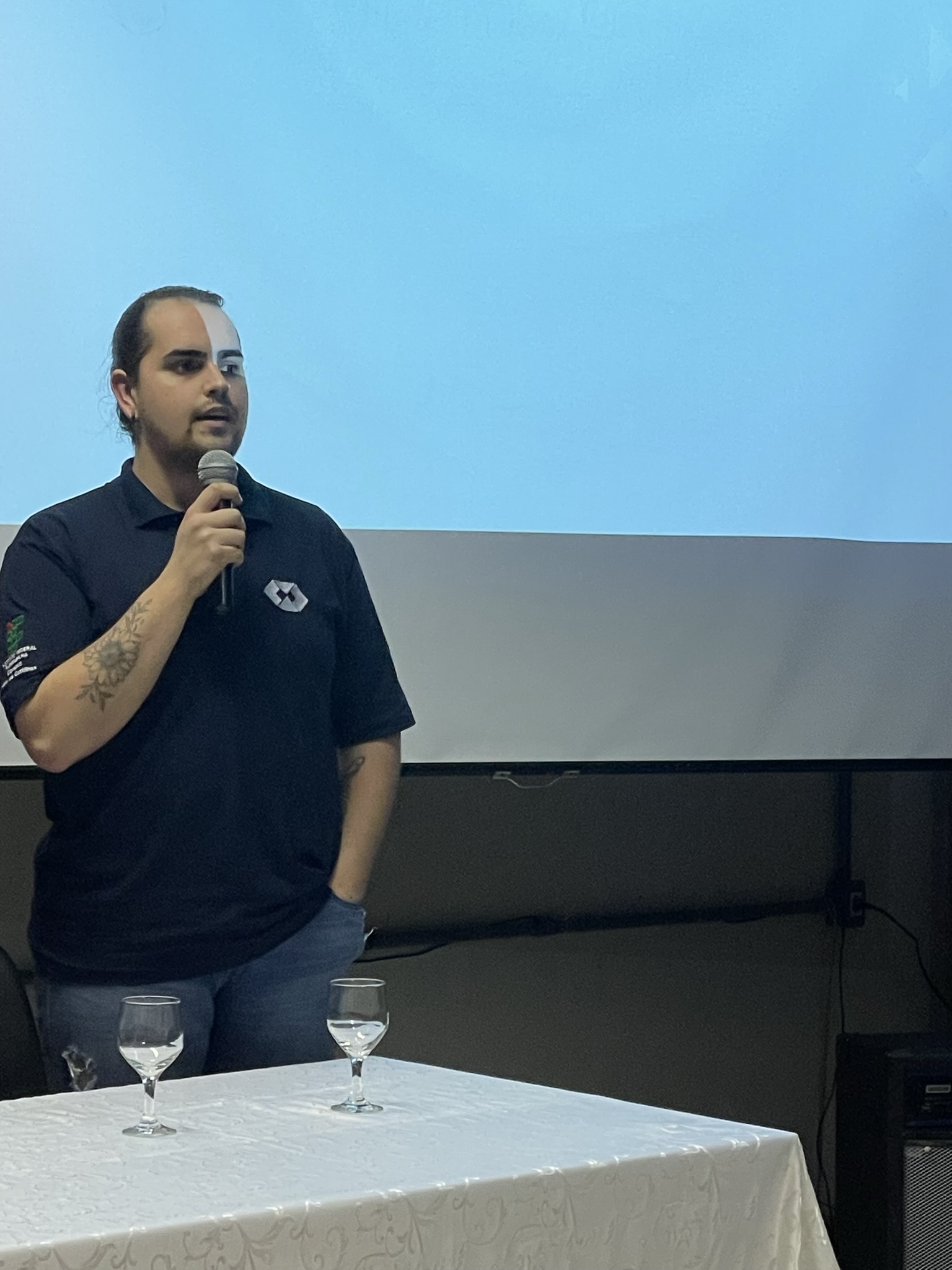 Rodrigo relembrou o início do curso de Administração, seu processo de reconhecimento com nota 5 em 2016. O diretor falou também da EJA na instituição, que está transcendendo os limites do município (o campus Júlio de Castilhos tem turmas de EJA também em Tupanciretã e Santa Maria). Ao final estimulou os/as estudantes que agarrem a oportunidade e façam a diferença. Environmental social and Governance (ESG) foi o tema da aula inaugural do evento. Elda e Lucas fizeram um histórico das ações das empresas e indústrias. De início foi lembrada a primeira revolução industrial, após destacou-se a principal diferença da primeira para a segunda – do ferro para o aço. Atualmente vivemos a revolução da inteligência artificial. Lucas destacou que vivemos de crises, sejam elas climáticas, financeiras ou de saúde e o papel da administração é mitigar os impactos delas.
