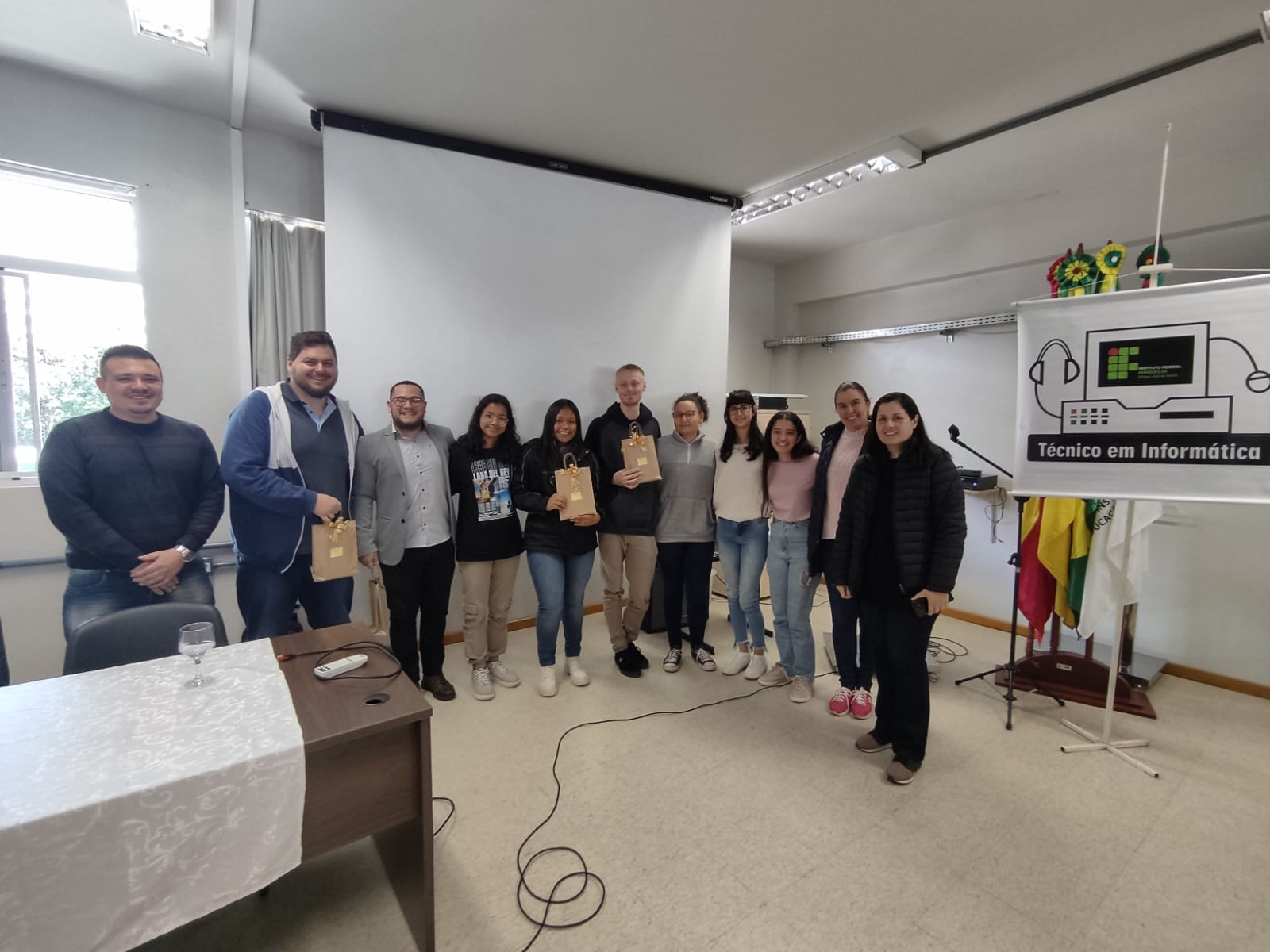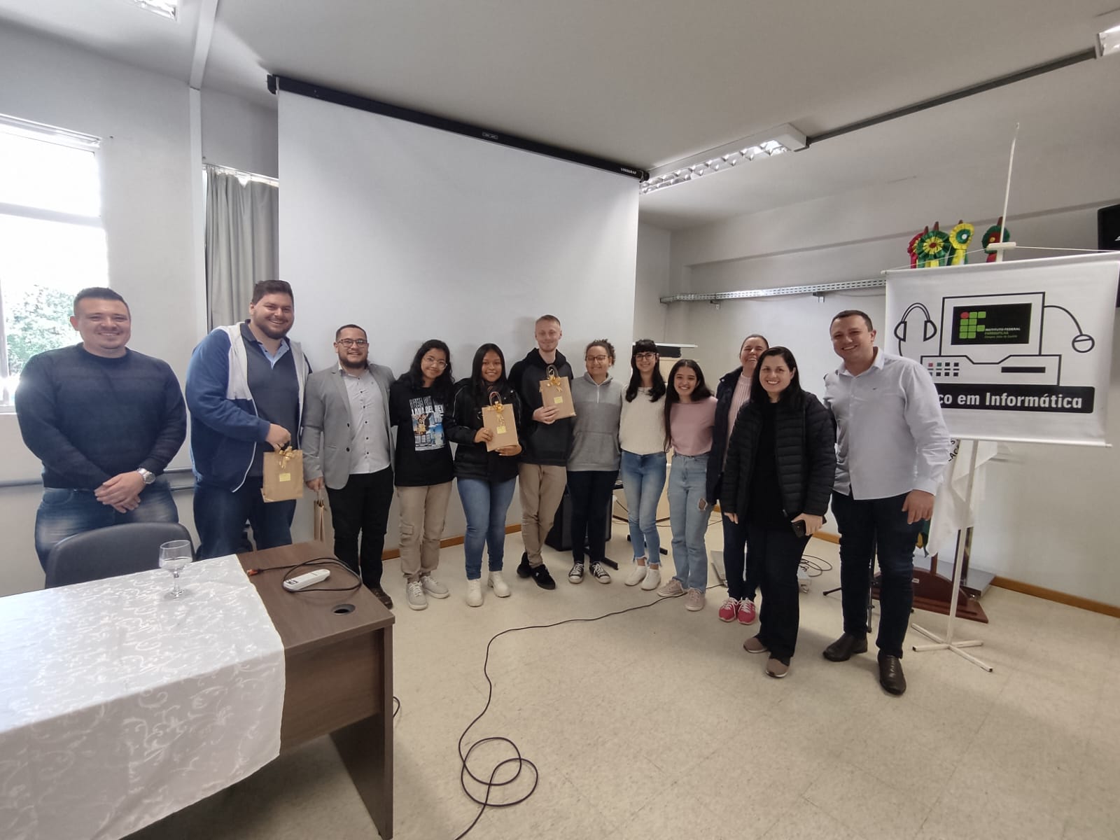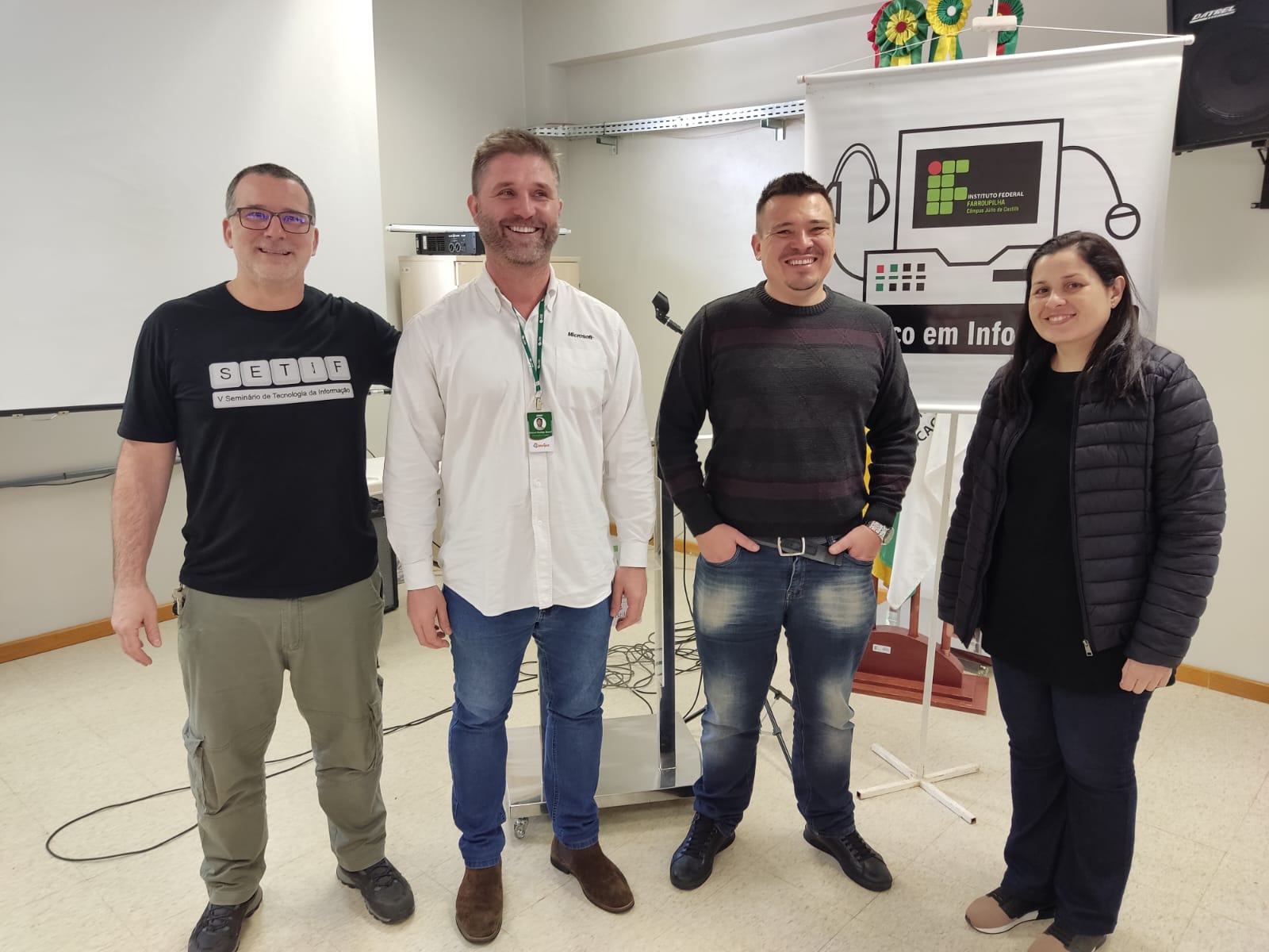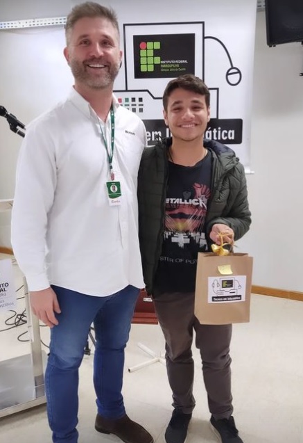 No dia do profissional de Informática, 19 de outubro, foi realizado o 11º Seminário de Tecnologia da Informação (XI SETIF) – evento que possibilita aos estudantes do Técnico em Informática integrado ao ensino médio do Campus de Júlio de Castilhos, discussões sobre a área da Tecnologia da Informação por meio de palestras, roda de conversa com egressos do curso e diversas oficinas, oportunizando trocas de experiências e conhecimentos entre os estudantes e profissionais. A roda de conversa com egressos do curso técnico contou com a participação de Alberto Neto, Aloisio Kneipp, Karoline Rodrigues e Renan Selli. A palestra foi ministrada por Maicon Buzatti (Cotrijuc) com a temática “Ferramentas gratuitas que o time de engenharia da Microsoft utiliza no seu dia a dia”.