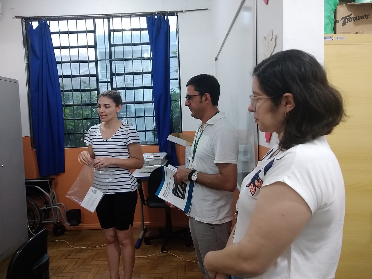A comitiva do IFFar - Campus JC foi recebida pela professora de Educação Especial da EMEF São Carlos, Marciele, e pela representante da Coordenação de Educação Especial da Secretaria de Município da Educação de Santa Maria (Smed), professora Carolina Teixeira.