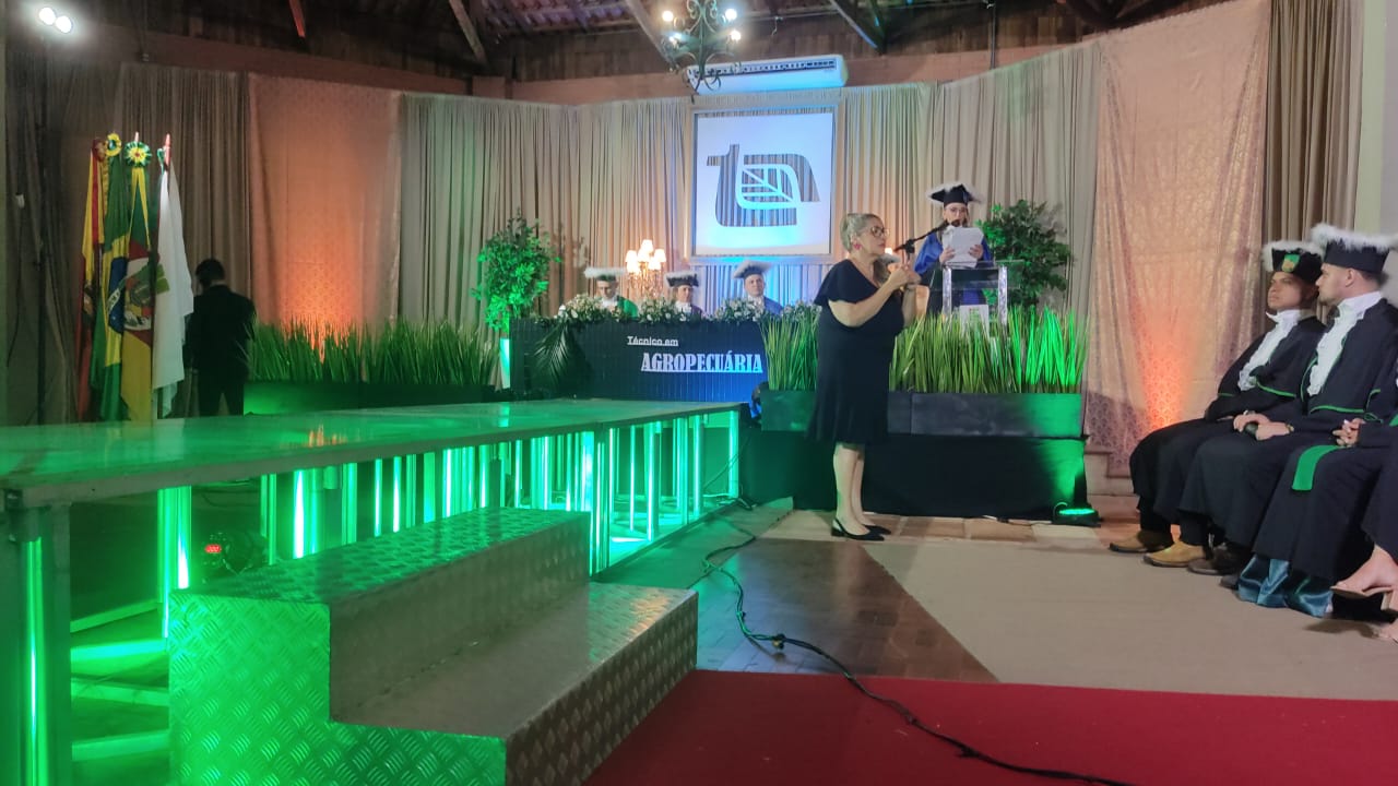 Já na sexta-feira, 22 de dezembro foi a vez do curso técnico integrado em Agropecuária, que teve 38 concluintes. Nesta turma, tivemos a primeira estudante surda, Erika Cardoso da Silva, e a primeira aluna com deficiência visual, Vitoria Pereira Portela, a concluírem o curso, como foi destacado pelo diretor geral, Rodrigo Carlotto, no seu discurso. “Histórias de dedicação e superação, que cada um de vocês, em maior ou menor medida, teriam para socializar conosco. Reconhecemos nossas limitações enquanto instituição, sabemos que nem sempre pudemos ser tão inclusivos quanto gostaríamos e deveríamos ser. Por isso, fica nosso agradecimento as Turmas, Docentes, Técnicos, Colaboradores Contratados, familiares e amigos contribuíram para que esse momento chegasse para cada um, cada uma de vocês”, afirmou Rodrigo.