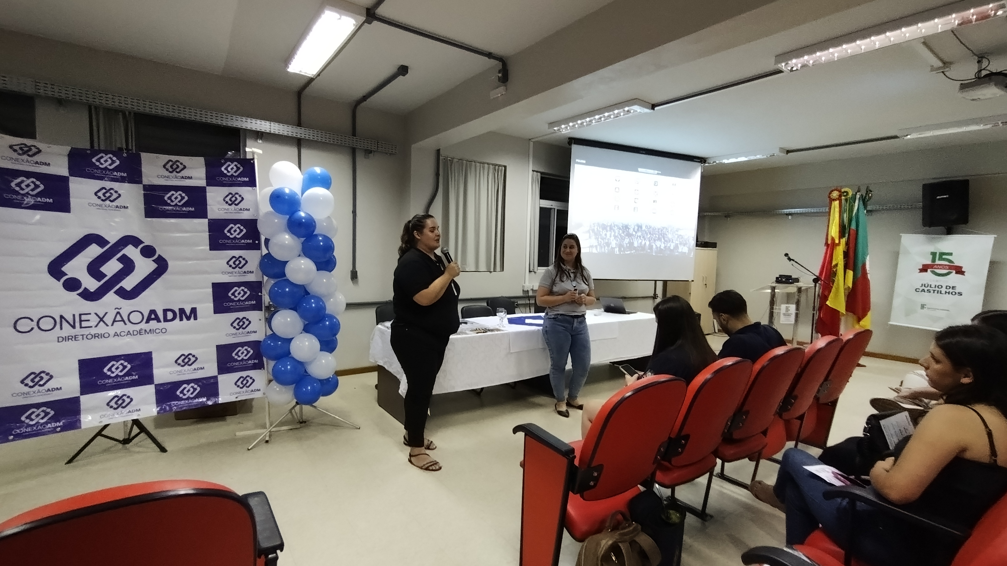 Na sequência, a coordenadora da Administração saudou aos/as presentes e agradeceu ao DA por organizar o evento e a professora Camila Coletto, por ter idealizado a aula inaugural junto com os/as estudantes.