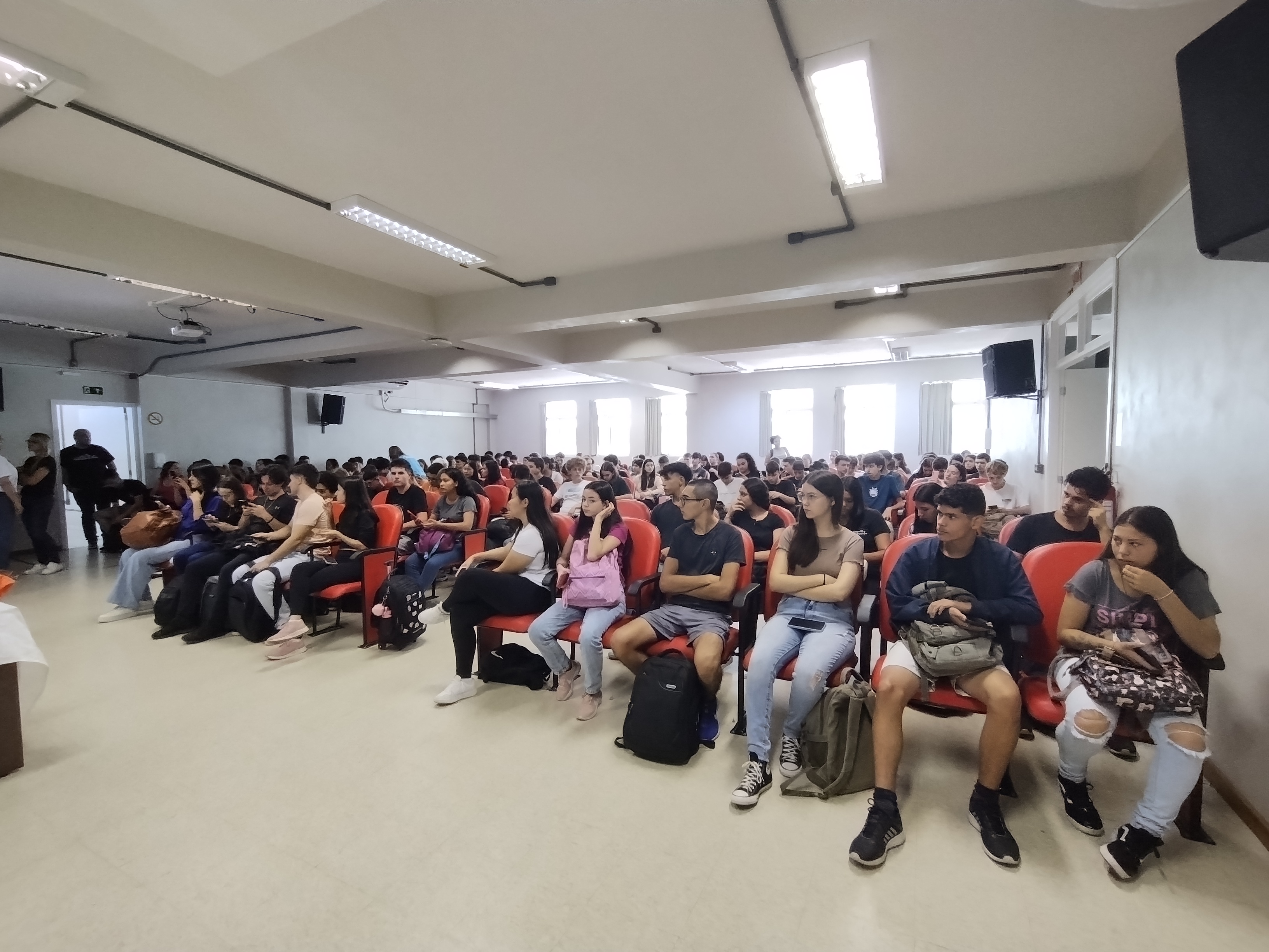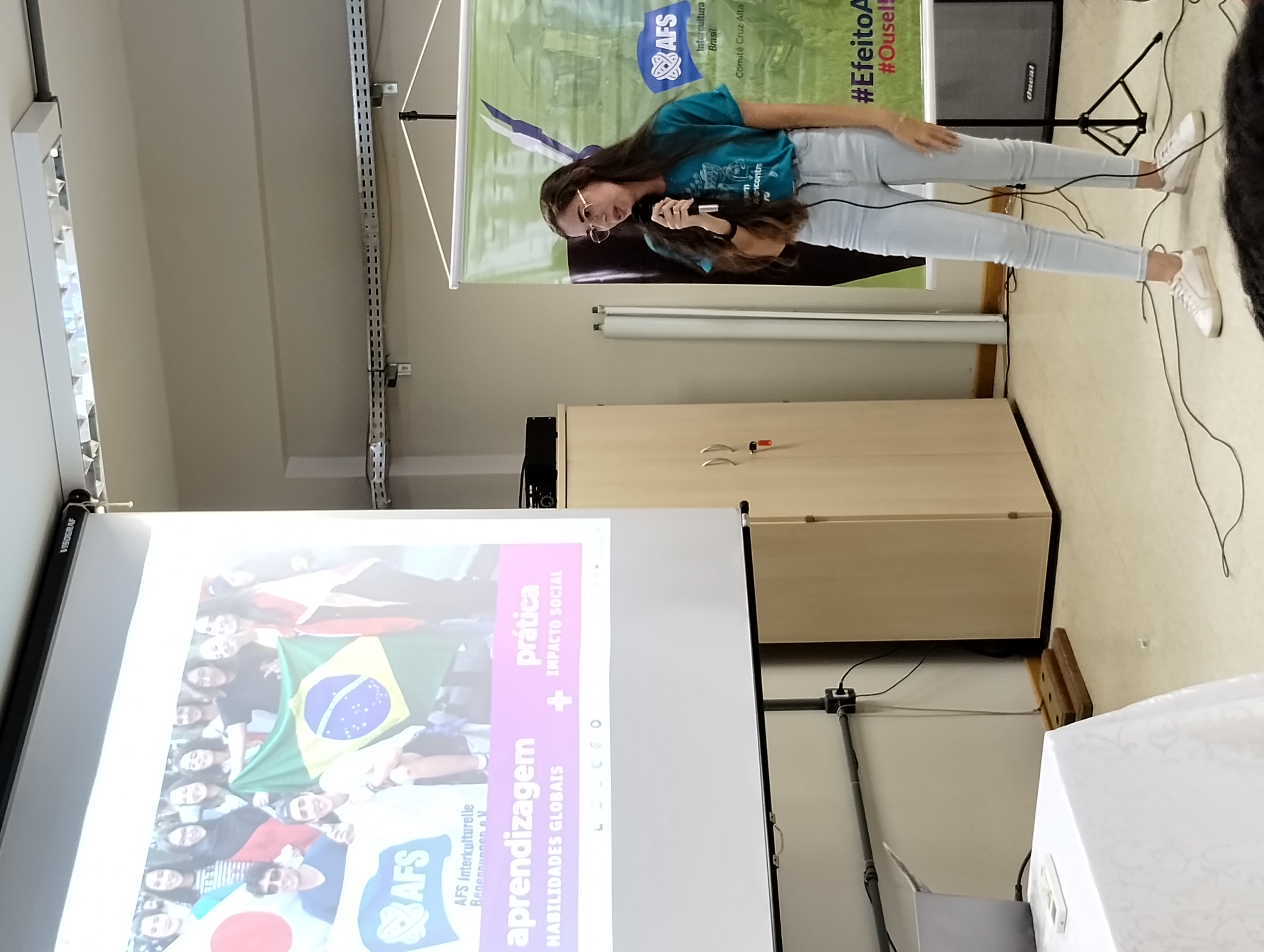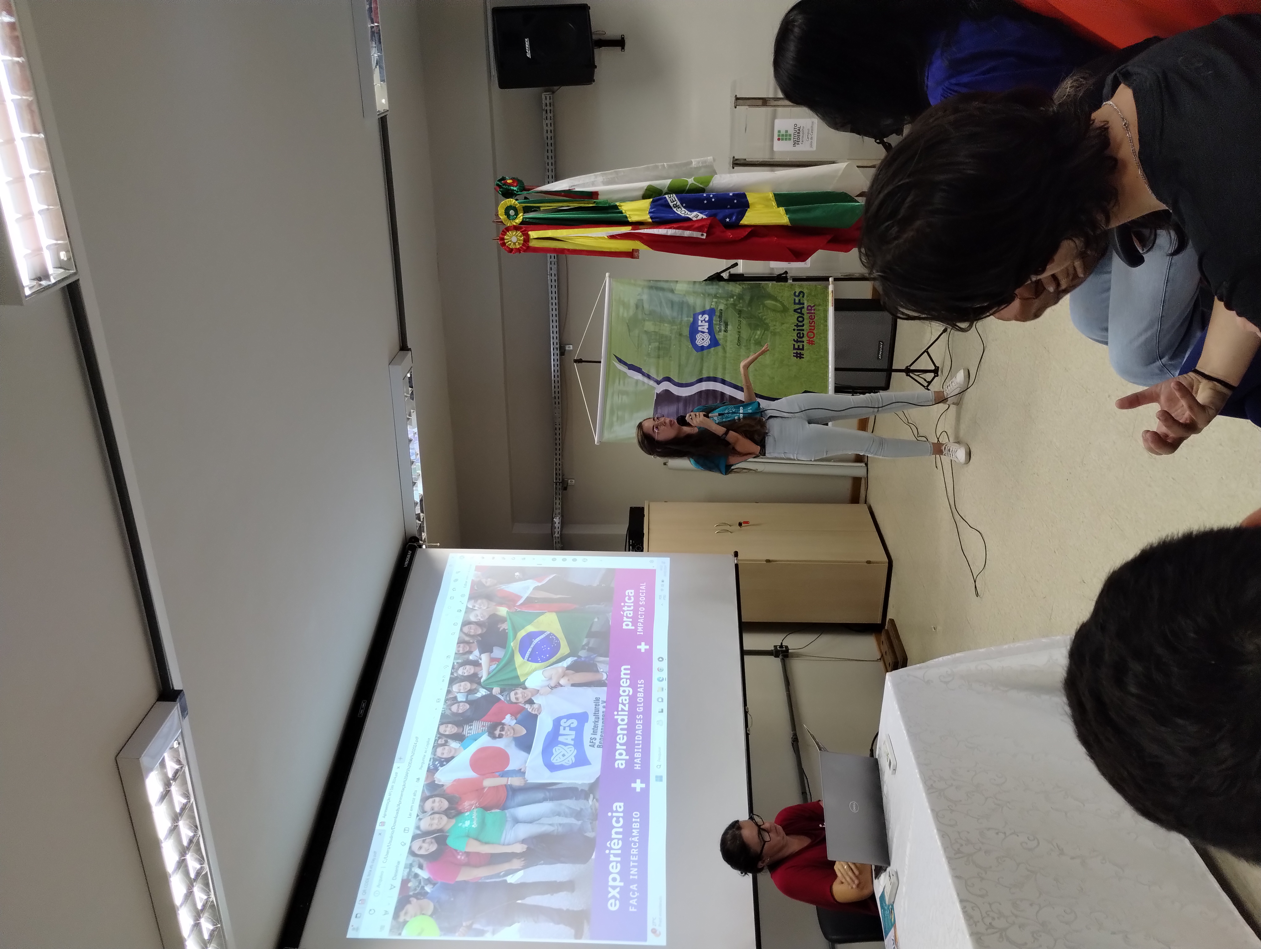 No início das aulas, a equipe da AFS já tinha feito uma visita ao campus para apresentar os programas para os/as alunos/as dos cursos técnicos integrados.
