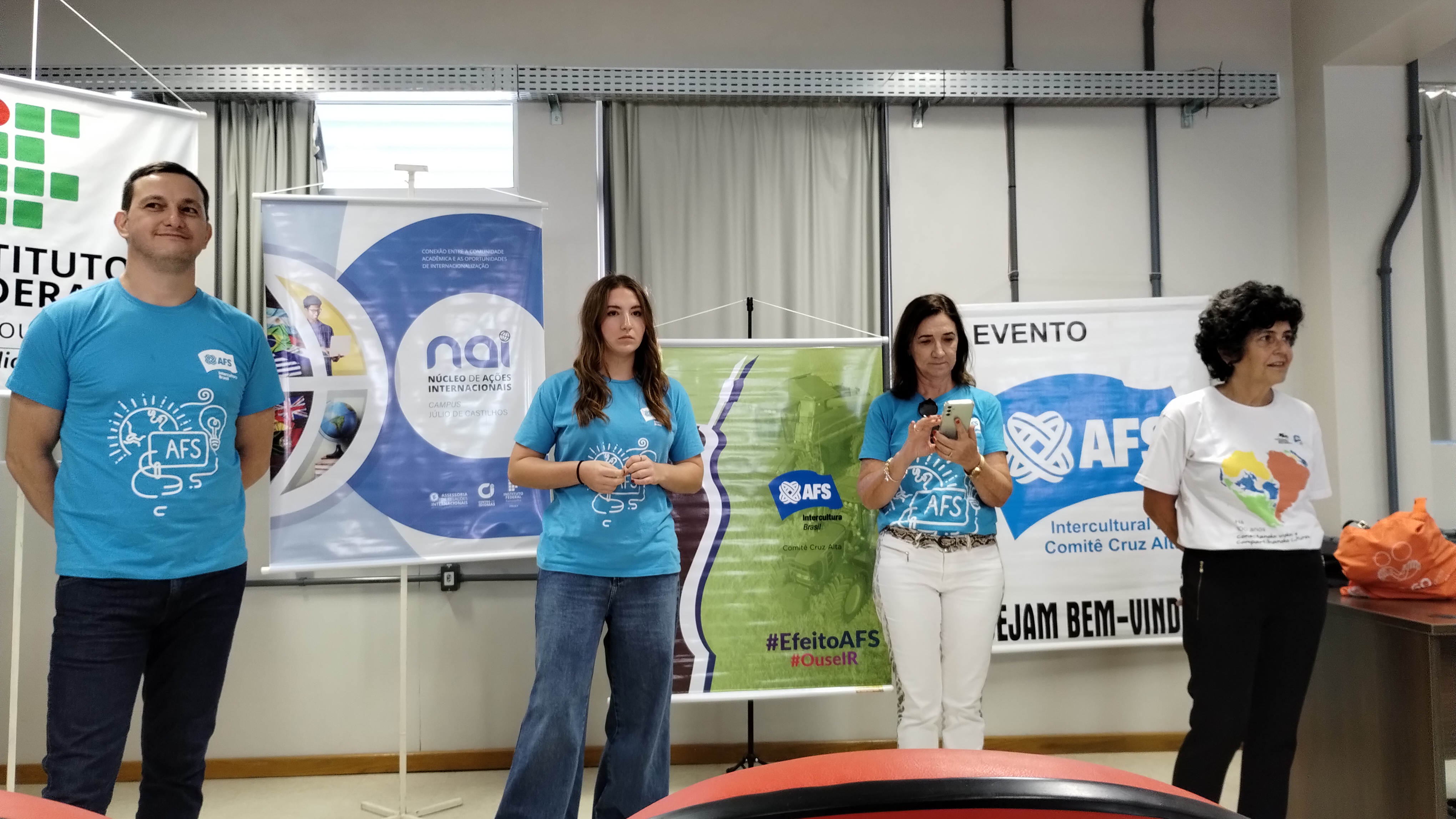 A equipe da AFS que veio visitar o campus é composta por voluntários e eles enfatizaram a importância dos voluntários para que a ONG consiga realizar seu trabalho. Além deles, famílias hospedeiras e organizações parceiras também são essenciais. A equipe destacou que os/as estudantes podem se inscrever para serem família hospedeira.