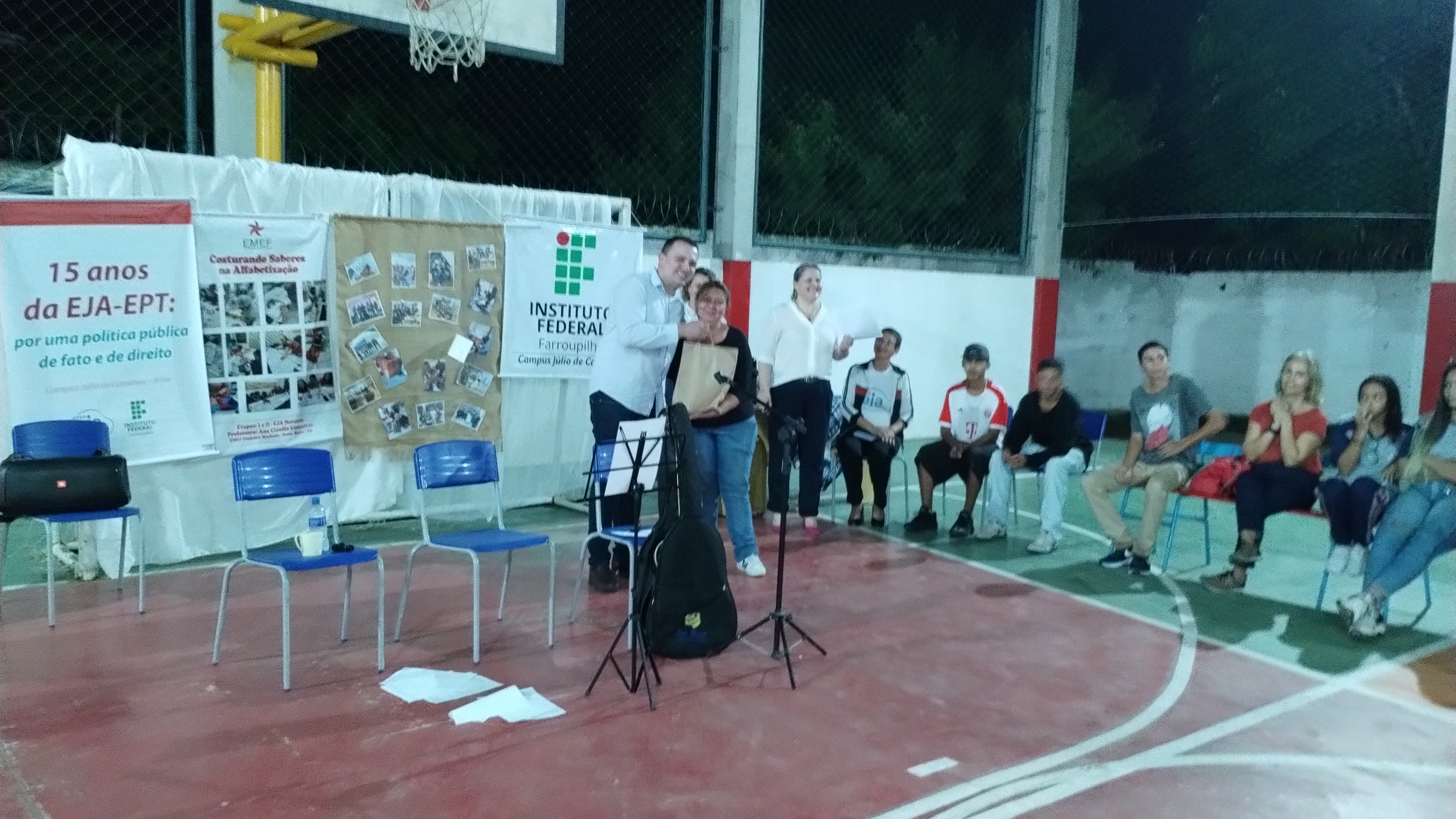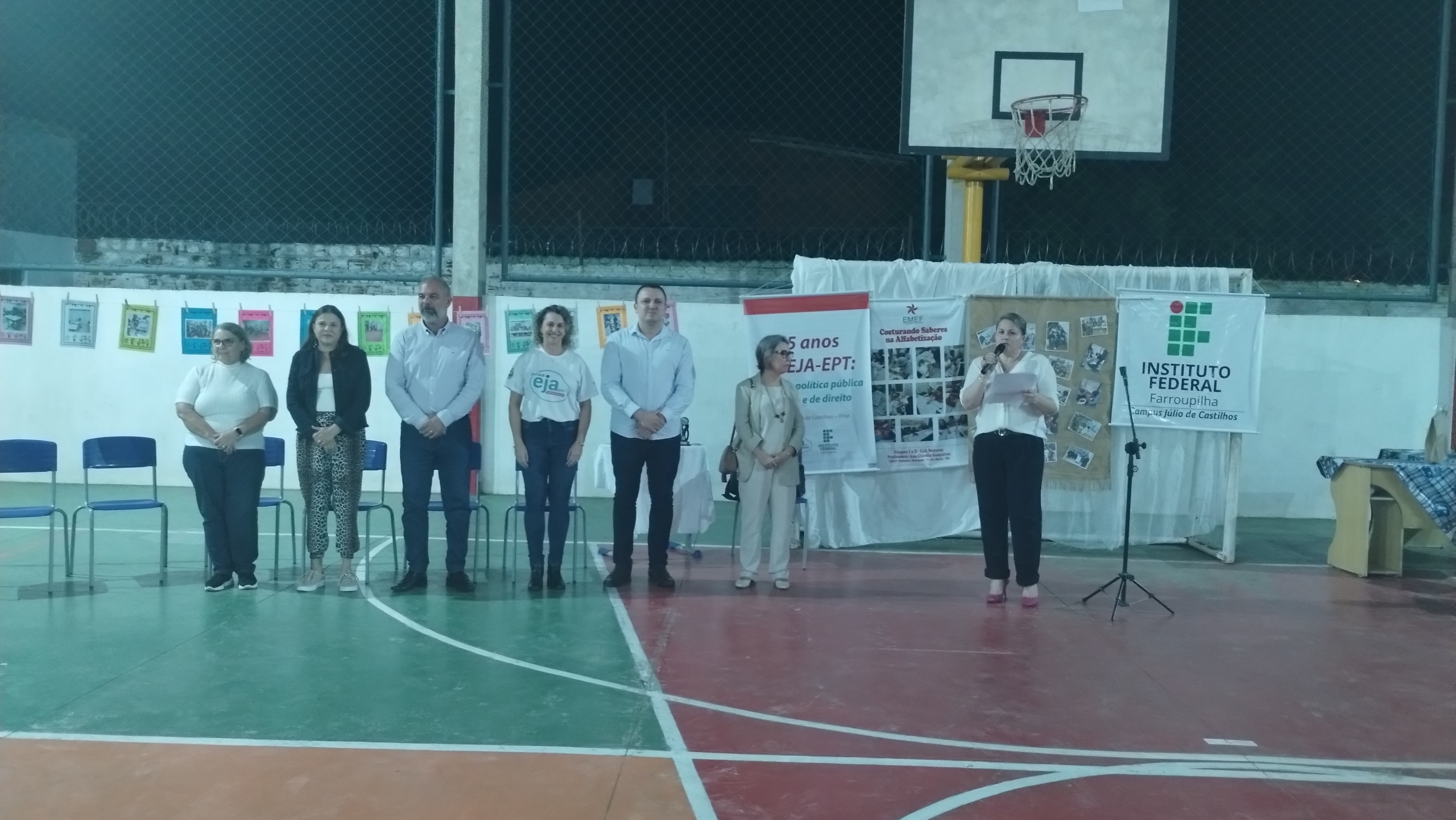 A noite de segunda-feira (08) foi marcada pela aula inaugural da EJA/EPT “Novos caminhos, novas perspectivas”, apresentada pelo psicólogo e diretor geral do campus Júlio de Castilhos, Rodrigo Carlotto, na escola Pinheiro Machado. Estiveram presentes o vice-prefeito, Rodrigo Décimo, a secretária de educação de Santa Maria, Lúcia Madruga, a vereadora Luci Duarte “tia da moto”, a coordenadora da EJA no IFFar, Cleia Tonin, a diretora de ensino Silvia Montagner e a diretora da escola Pinheiro Machado, Lucélia Helena Ferreira.