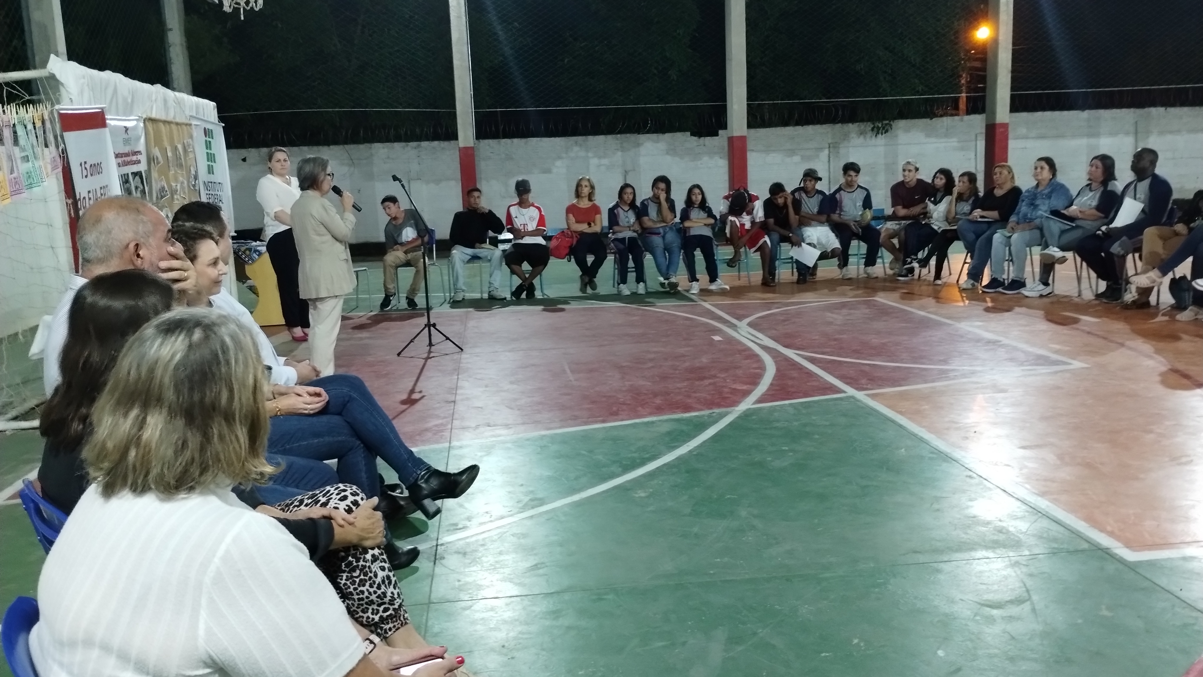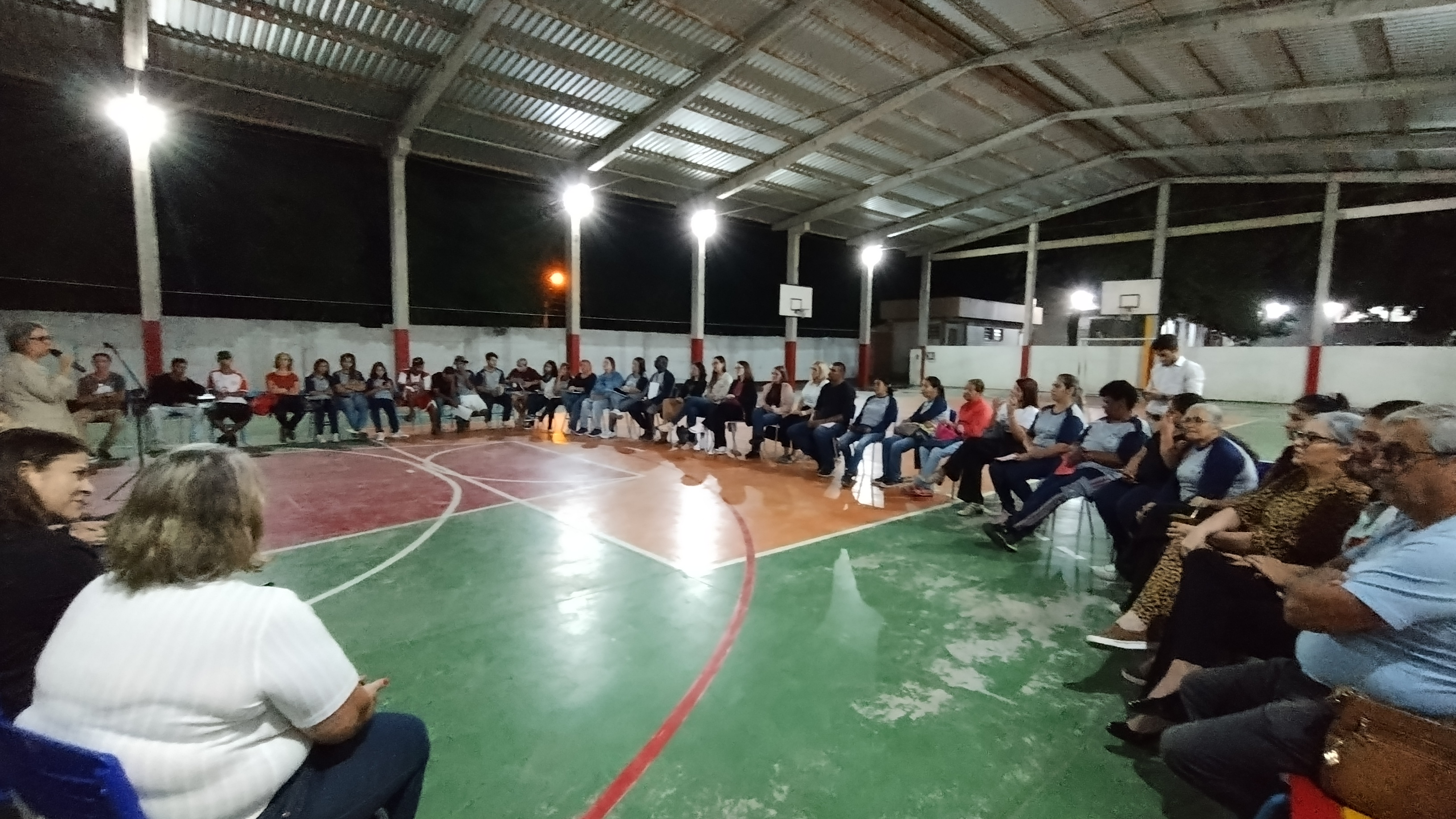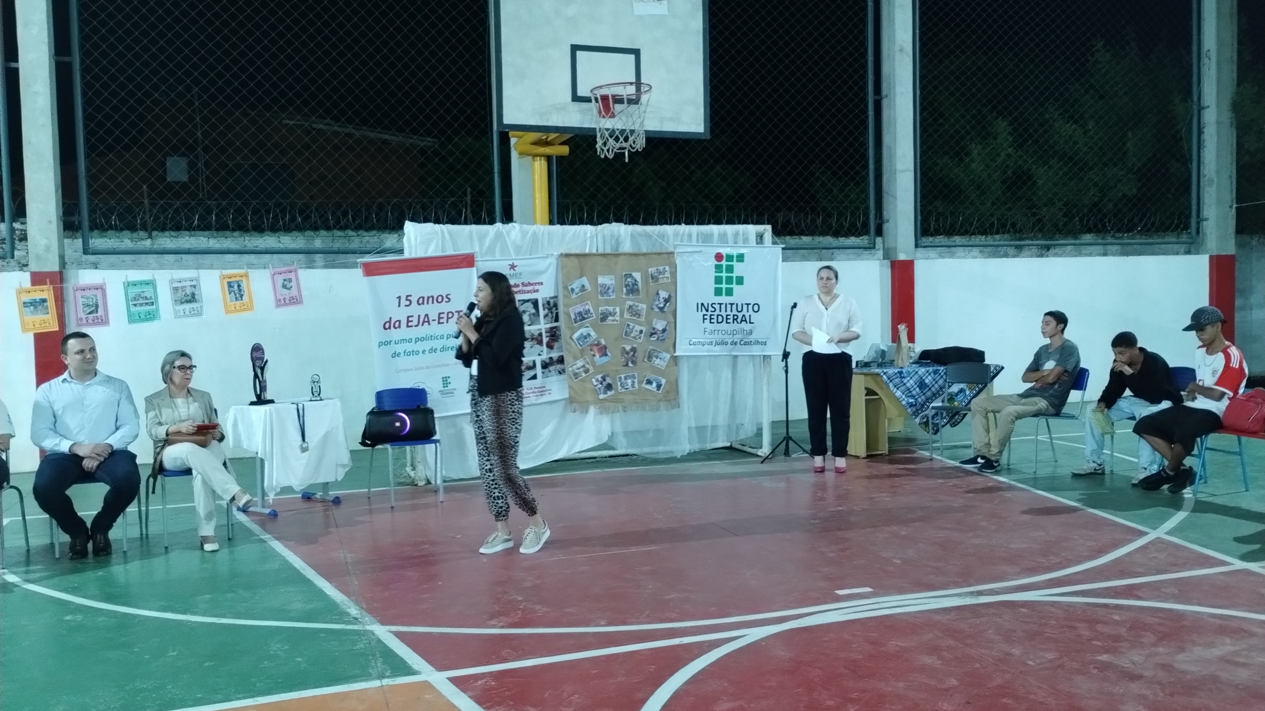 Depois do diretor foi a vez da vereadora Luci falar, ela enfatizou que estava ali como educadora e não como vereadora, disse que conhecia a realidade de quem estuda de noite, pois já trabalhou nesse turno; ela também relembrou que a EJA é um privilégio, pois não são todas as escolas que possuem. Ressaltou que ninguém solta a mão de ninguém, como dito anteriormente pela Cleia e que está a disposição para ajudar como puder, que se um perceber que outro colega não está vindo podem chamar ela, que ajuda, vai na casa e auxilia como pode, pois seu trabalho é somar e não deixar ninguém desistir.