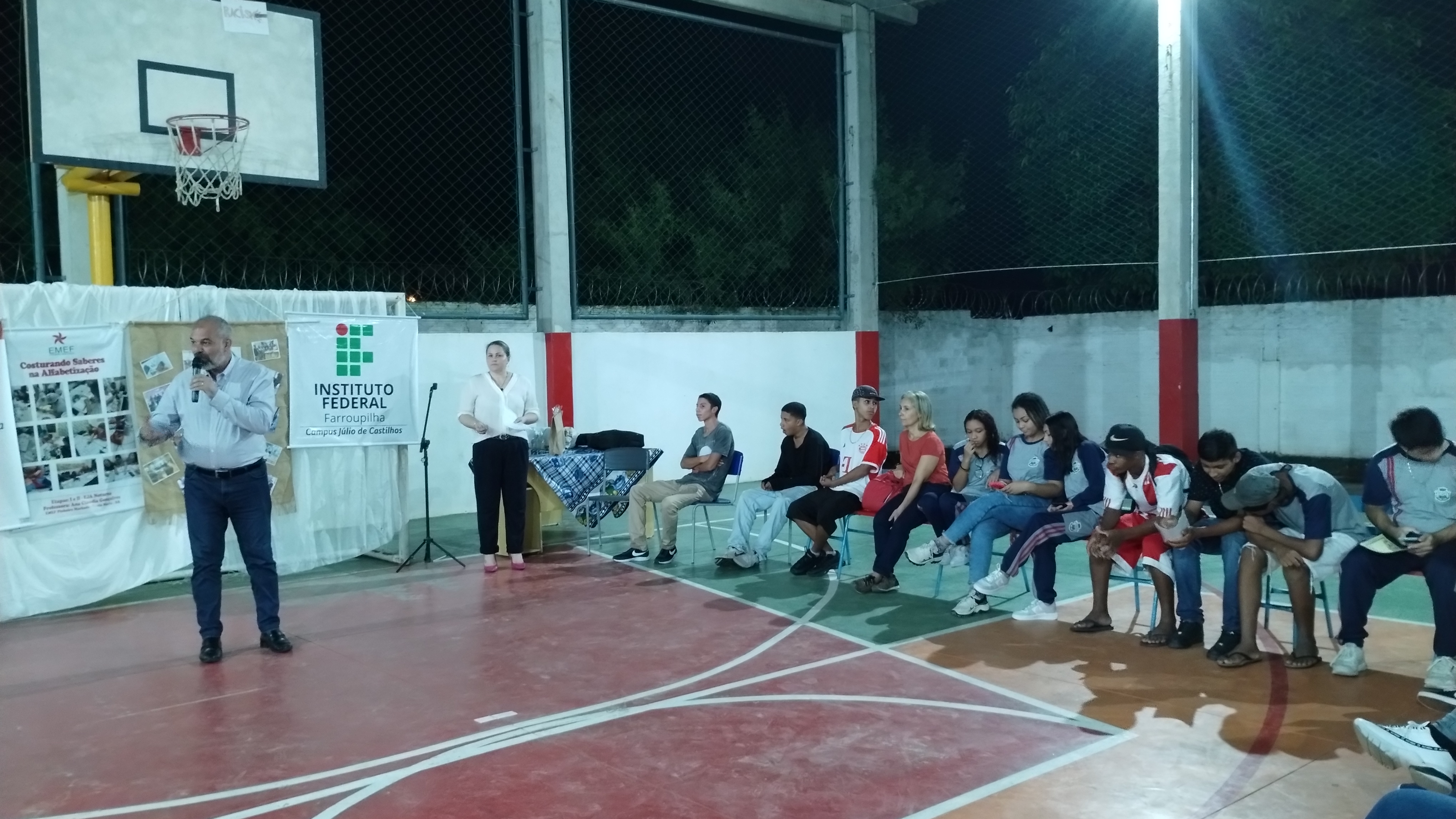 Antes da palestra teve momento cultural organizado pela professora Raquel, que organizou um cordel com os/as alunos/as da terceira fase.