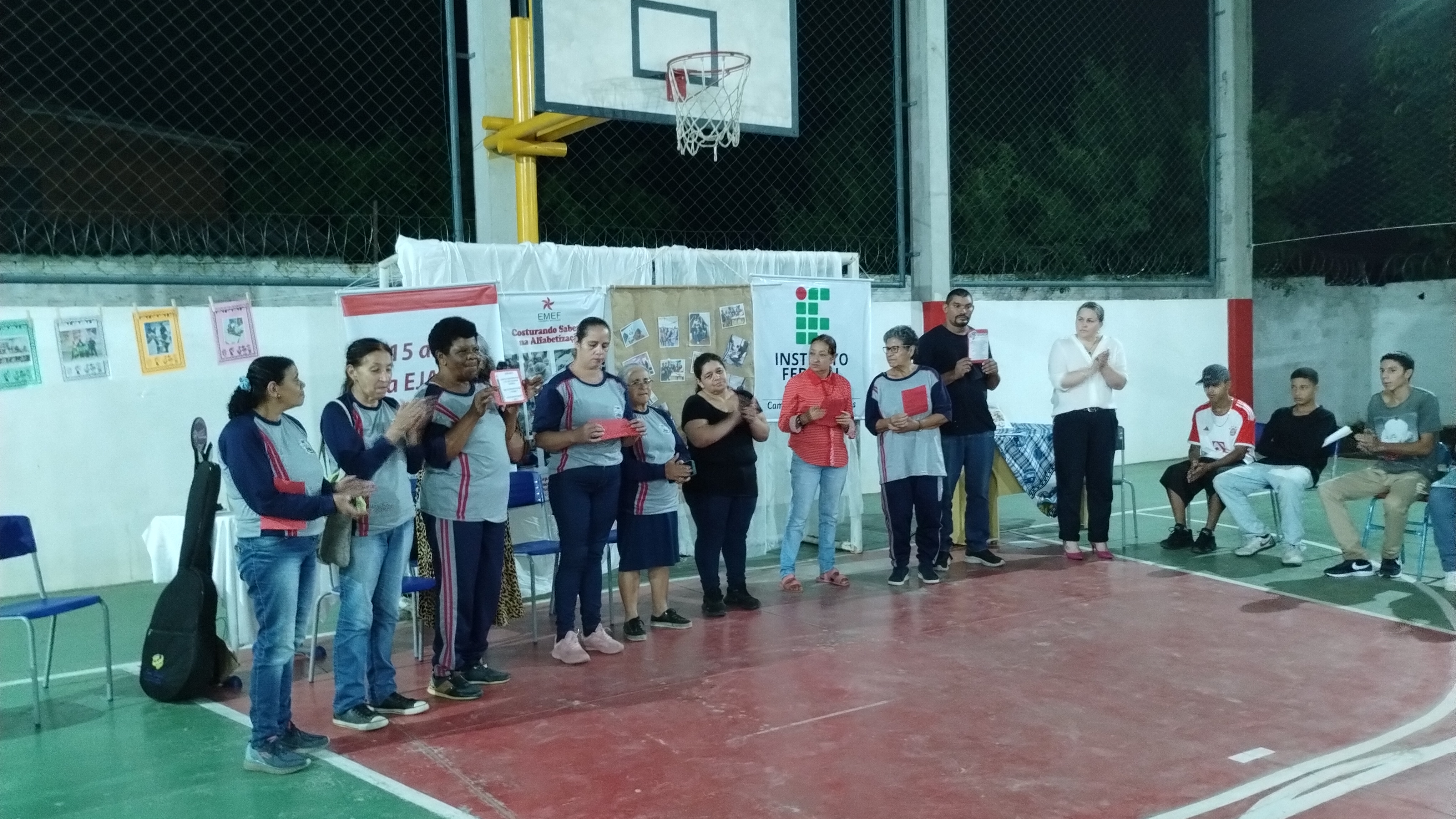 A secretaria Lúcia disse que não tem preço sair com uma formação profissional junto com o ensino fundamental. “Na formatura vocês vão se dar conta que tudo mudou na vida de vocês”, falou e usou o exemplo de Dona Fátima, que em 2021 era analfabeta e entrou na turma de alfabetização, já em 2022, ela ingressou na EJA/EPT e ao final de 2023, foi de analfabeta à formada no ensino fundamental e profissionalizante.