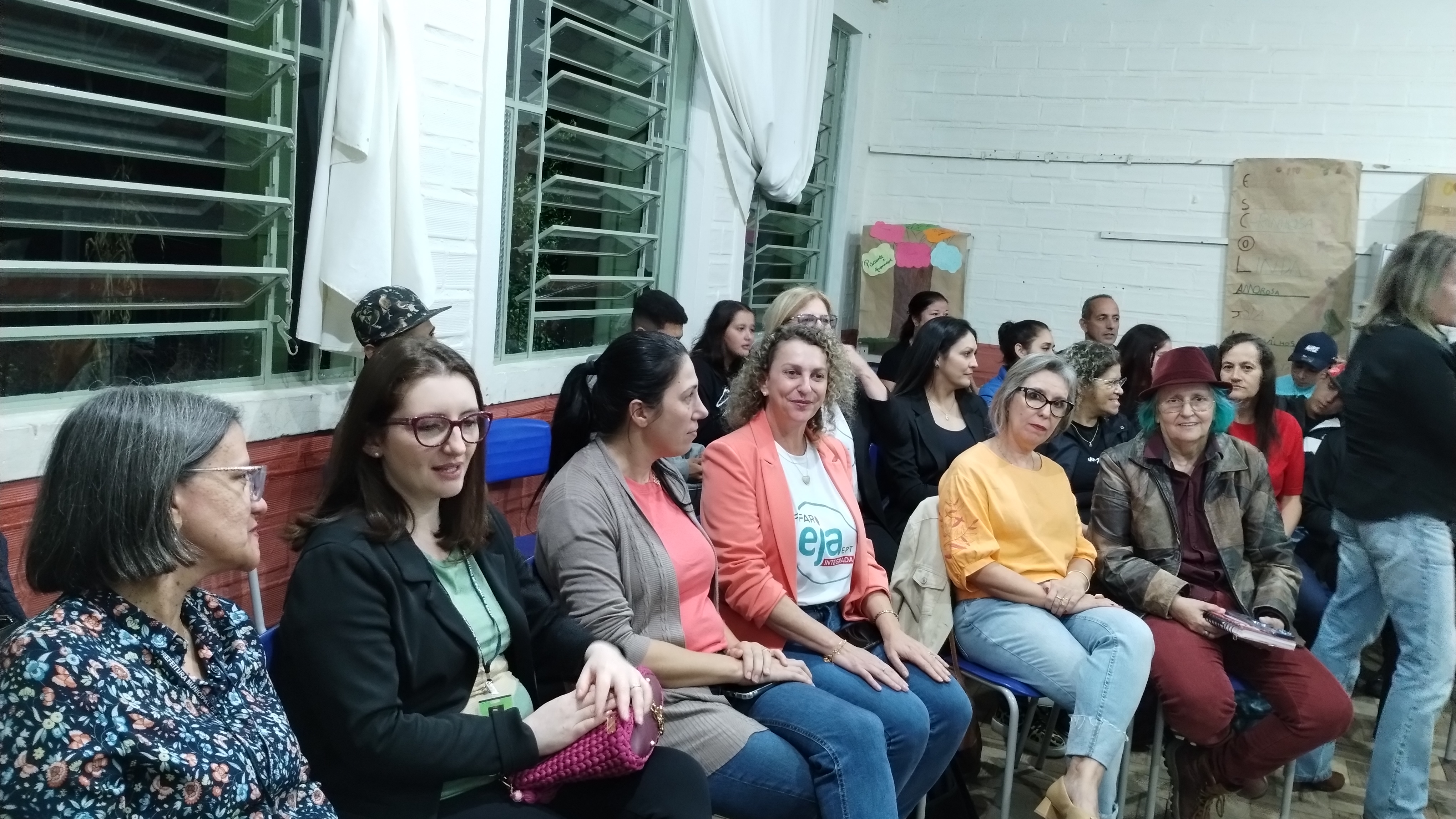 Cristina lembrou que a EJA já existe há bastante tempo, mas nesse formato era um sonho, que demorou a sair do papel. Mas agora é uma realidade, em 2023 formamos 99 estudantes e recebemos feedbacks de alunos/as que foram promovidos/as ou arrumaram um emprego ou empreenderam. “São muitas pessoas aqui na escola, na prefeitura e no IFFar trabalhando por cada um de vocês, para que se qualifiquem” disse a professora que fechou falando que a escola João da Maia Braga é destaque, pois tem uma aluna que representa a EJA do município no fórum estadual da EJA e vai para um encontro nacional, representando o estado: Eliliane.