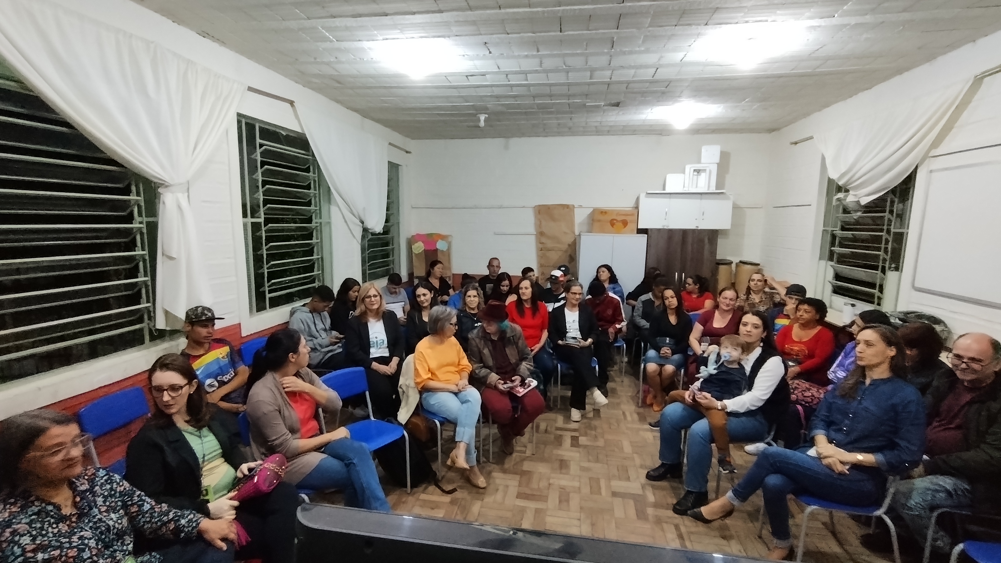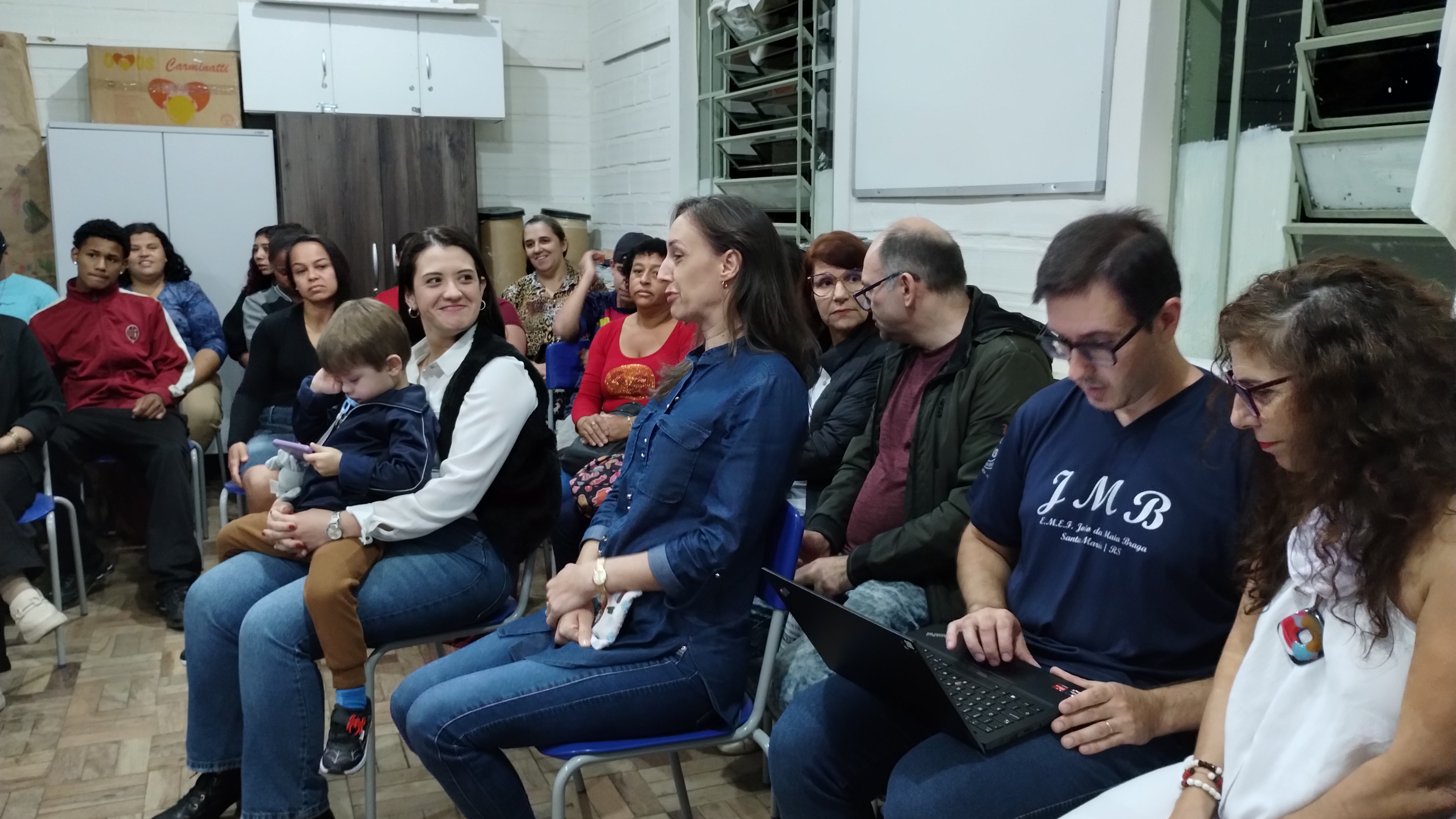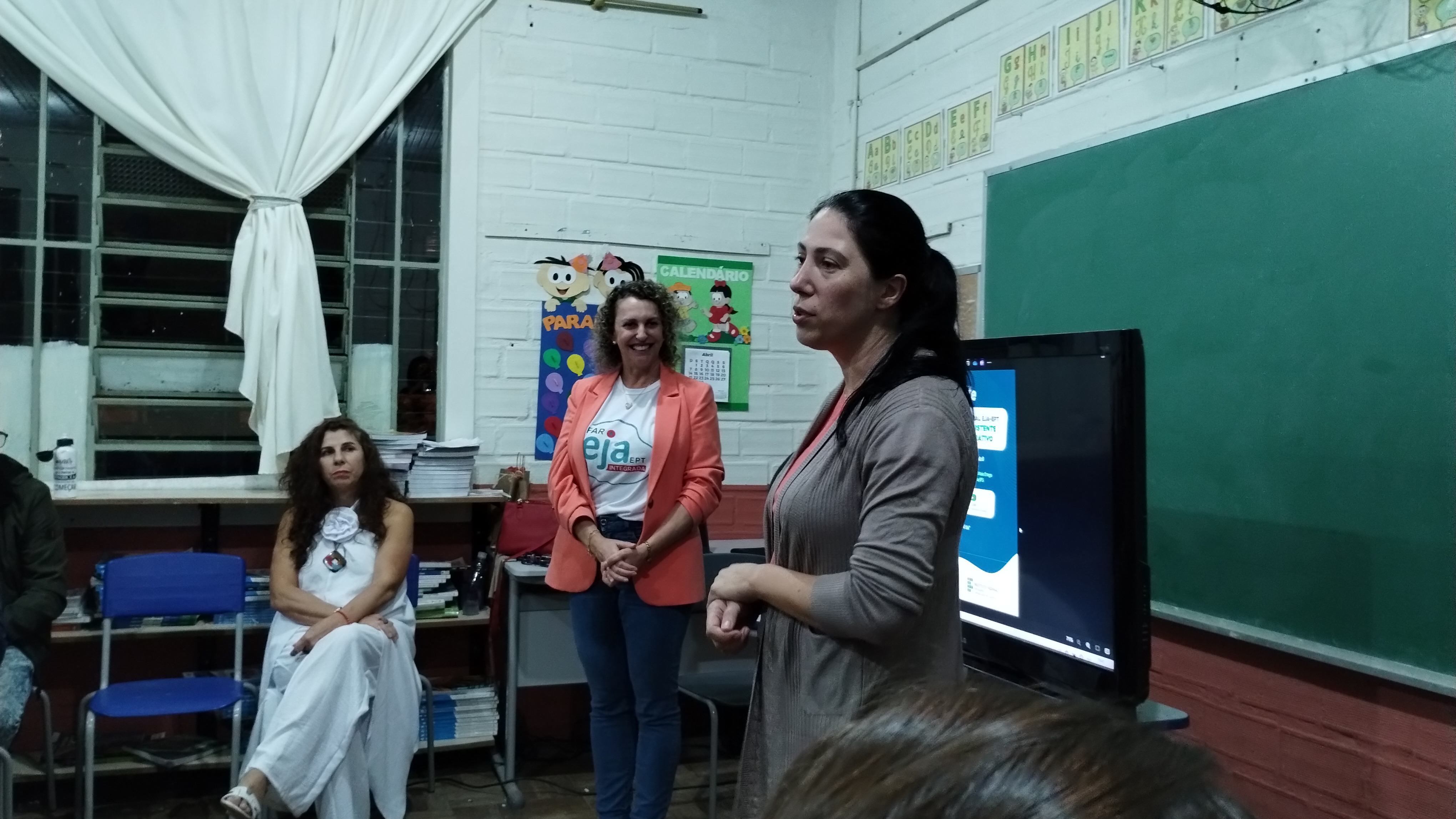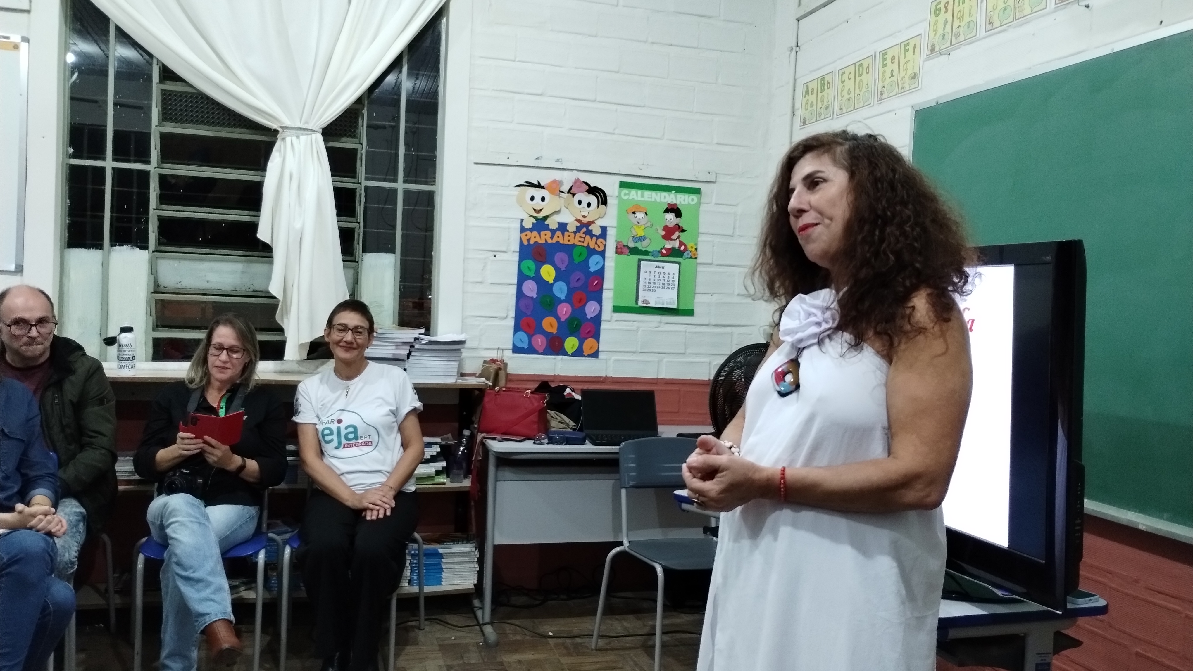 Cleia destacou estar feliz com a sala cheia e fez uma saudação especial aos/as alunos/as. Após fez um apanhado dos números da EJA no IFFar: são 11 municípios para que mais pessoas tenham um ensino de qualidade e as parcerias são essenciais. “Não desista, porque vocês estão sendo privilegiados por terem essa oportunidade de estudo, já que são 60 milhões de brasileiros/as que não concluíram o ensino médio”, disse a professora.