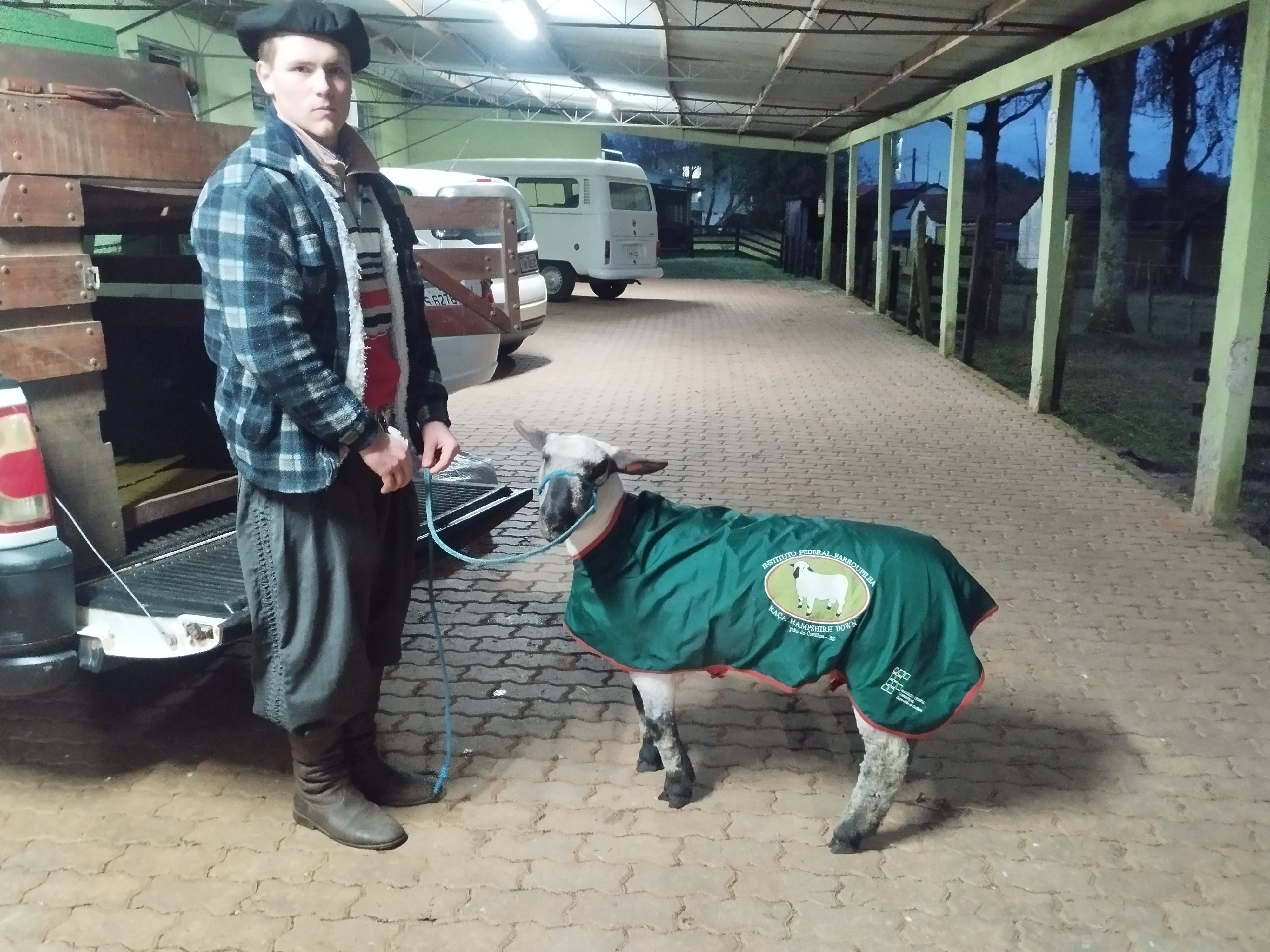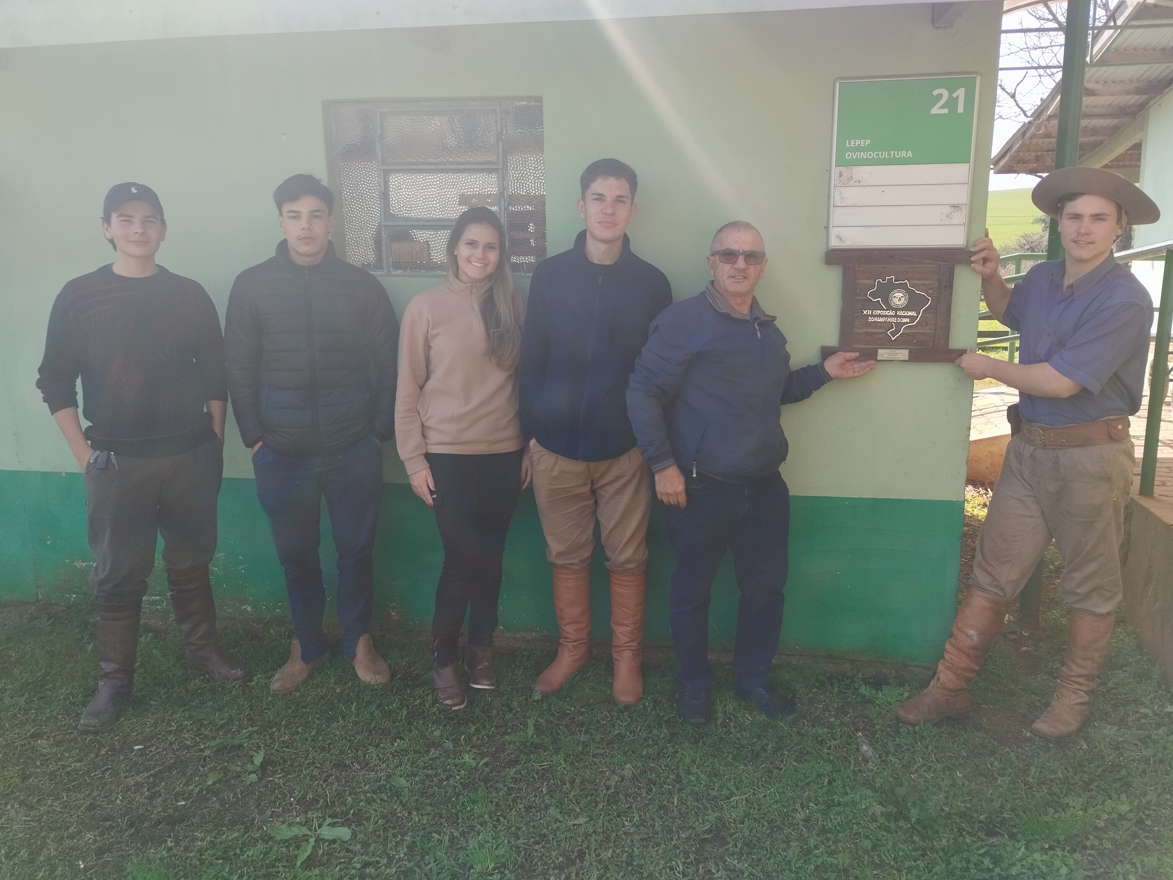 A equipe diretiva parabeniza a equipe responsável pelo LEPEP de Ovinocultura pelo excelente trabalho: a orientação do professor Rui Pilar (responsável pelo laboratório), o aluno monitor Felipe Braz (responsável pelo treinamento do animal, cuidados durante o evento e condução na pista de julgamento), os servidores César Telles (responsável pelo manejo e alimentação do animal no campus) com o auxílio do técnico em agropecuária Rodrigo Becker da Rosa e o médico veterinário Douglas Pedro.
